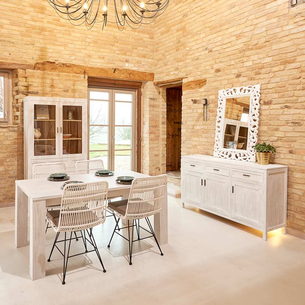 Ky dollap ekspozimi prej druri të fortë tik është një pjesë elegante dhe funksionale, ideale për të përmirësuar hapësirat si dhoma e ndenjes ose dhoma e ngrënies. Struktura e hollë dhe mjeshtëria nxjerrin në pah fibrat natyrale të drurit , duke i dhënë ngrohtësi dhe karakter hapësirës.