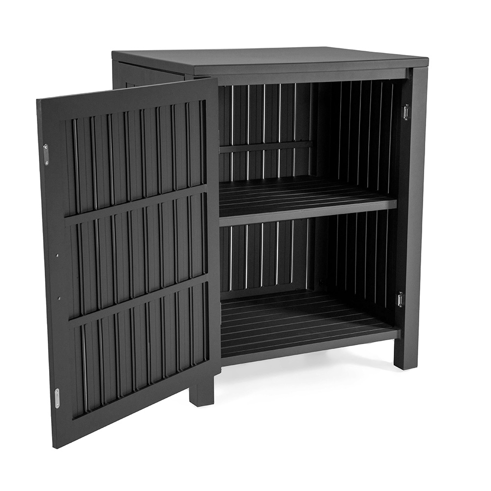 Zbuloni prakticitetin dhe elegancën e bufesë sonë prej alumini , të veshur me pluhur me një ngjyrë të sofistikuar antracit . Kjo pjesë është ideale për të shtuar një prekje të stilit bashkëkohor në çdo hapësirë të jashtme ose të brendshme. Ndërtimi i tij rezistent ndaj motit e bën atë të përsosur për t'u përdorur në kopshte, në tarraca apo edhe si një zgjidhje elegante për ruajtjen e brendshme.