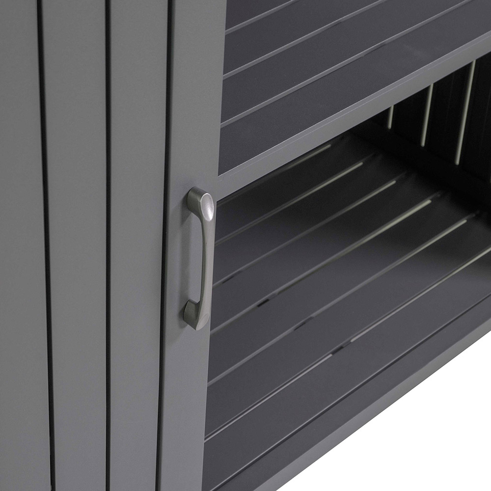 Zbuloni prakticitetin dhe elegancën e kabinetit tonë të aluminit të veshur me pluhur. Kjo pjesë është ideale për të shtuar një prekje të stilit bashkëkohor në çdo hapësirë të jashtme ose të brendshme. Ndërtimi i tij rezistent ndaj motit e bën atë të përsosur për t'u përdorur në kopshte, në tarraca apo edhe si një zgjidhje elegante për ruajtjen e brendshme.