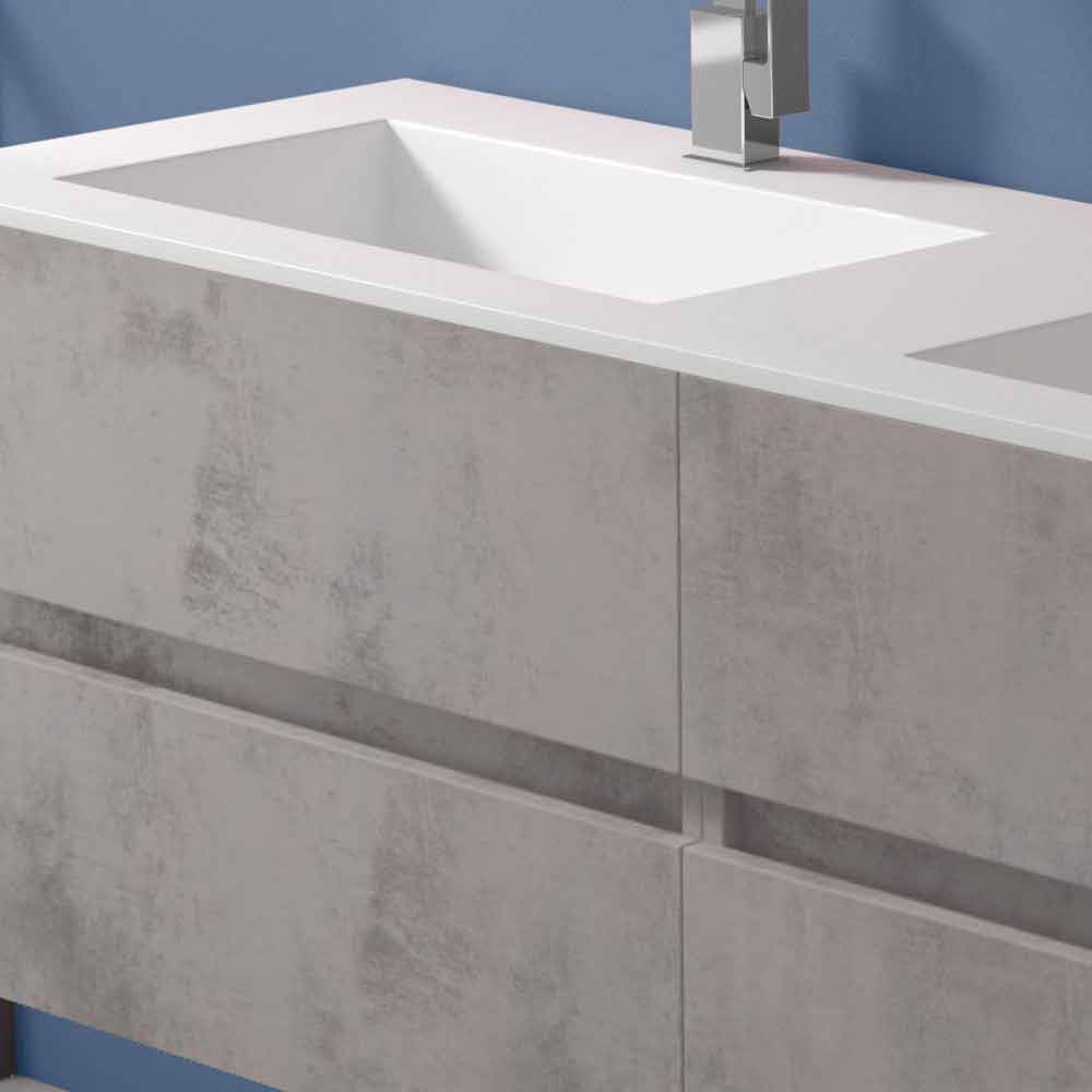 Kjo mobilje banjo e varur me lavaman të integruar të dyfishtë jep një atmosferë mikpritëse dhe jashtëzakonisht elegante.