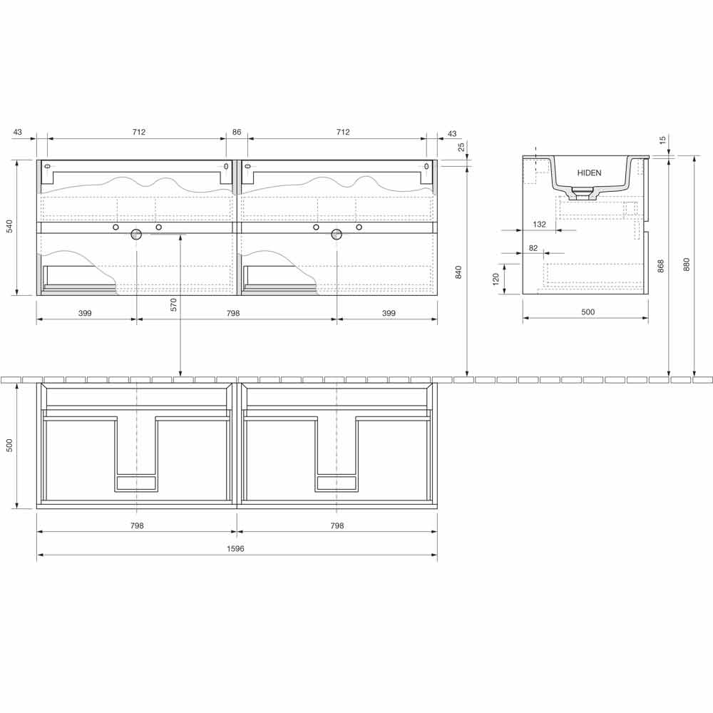 Dollapi është i përbërë nga dy baza të lavamanit me një sirtar standard dhe një sirtar në formë 1 të bërë nga fibra druri të laminuara me hidro W 100 dhe ujë i papërshkueshëm nga uji , në mënyrë që të sigurojë një qëndrueshmëri më të madhe dhe të parandalojë dëmtimin e kabinetit në kontakt me ujin. .