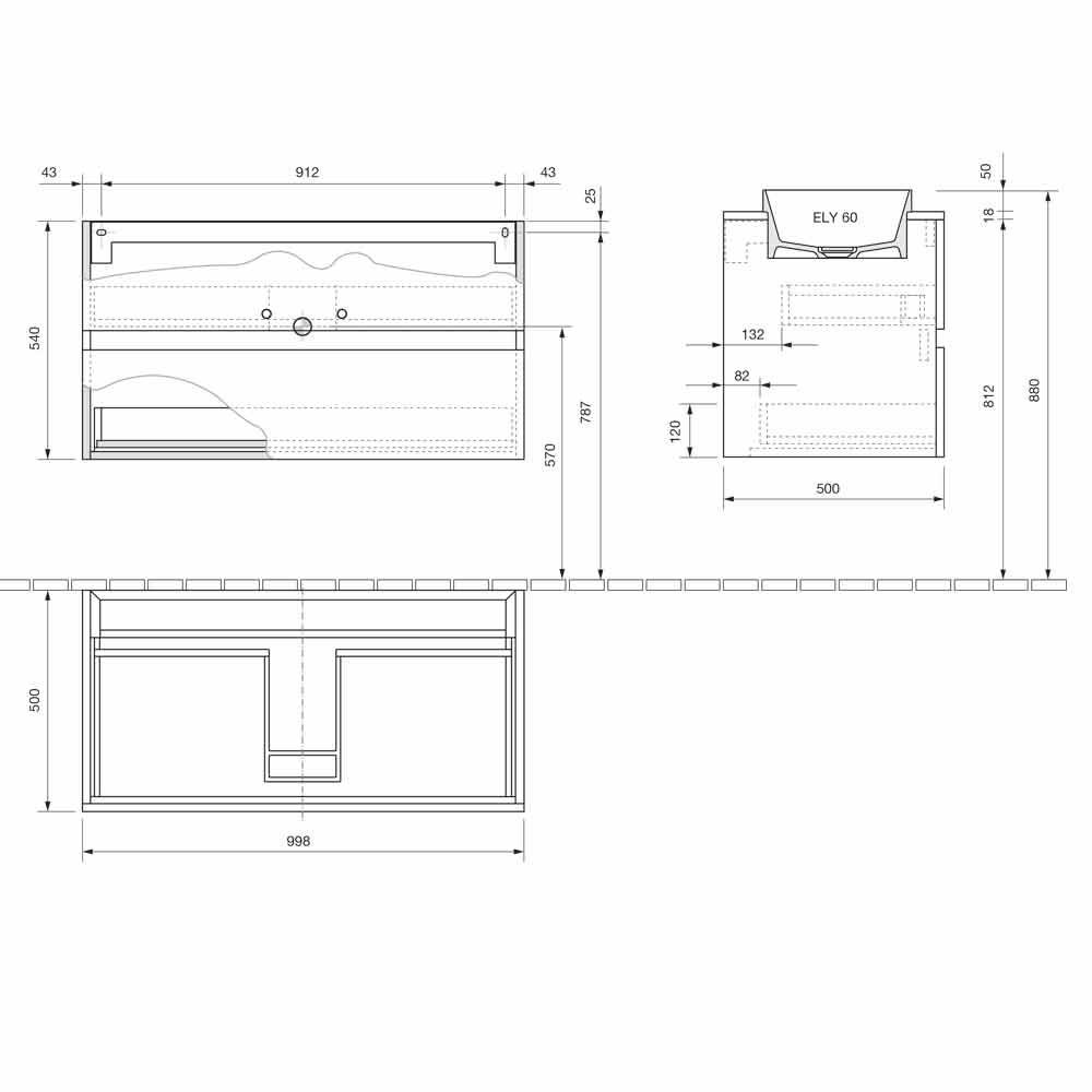Baza e lavamanit me një sirtar standard dhe një sirtar me formë është bërë nga fibra druri hidro W 100 të laminuara dhe të papërshkueshme nga uji , në mënyrë që të sigurojë një qëndrueshmëri më të madhe dhe të parandalojë dëmtimin e kabinetit në kontakt me ujin.