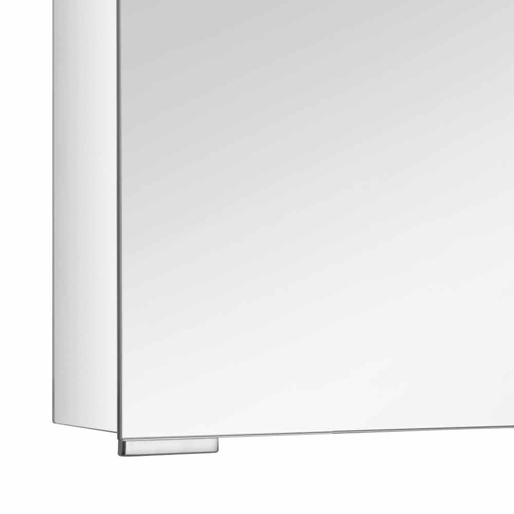 KabinetiMirror me derë pasqyrë (të brendshëm) dhe pasqyra anësore me argjend pikturuar anodized strukture alumini dhe detaje në Chrome fund. Dizajni i tij është diskret dhe i gjithanshëm, i aftë të përshtatet me stilet më të larmishme të mobiljeve. Ajo që e dallon është përdorimi i lëndëve të para të çmuara që i japin jetë një produkti të klasit të lartë i aftë të revolucionarizojë mobilimin e çdo zone banjo. Aspekti i tij funksional është i një rëndësie të madhe, maksimizuar nga hapësira e madhe brenda derës e organizuar në 3 rafte qelqi të rregullueshme për lartësinë, ideale për rregullimin e objekteve dhe aksesorëve në mënyrën më të mirë të mundshme. Pastaj plotësoni me një prizë praktike të brendshme të energjisë e cila ju lejon të rimbushni pajisjet tuaja elektronike në një rehati totale edhe kur dera është e mbyllur. Së fundmi, prania e llambave LED lejon ndriçim uniform dhe homogjen të aftë për të krijuar një atmosferë mikpritëse dhe intime brenda mjedisit.