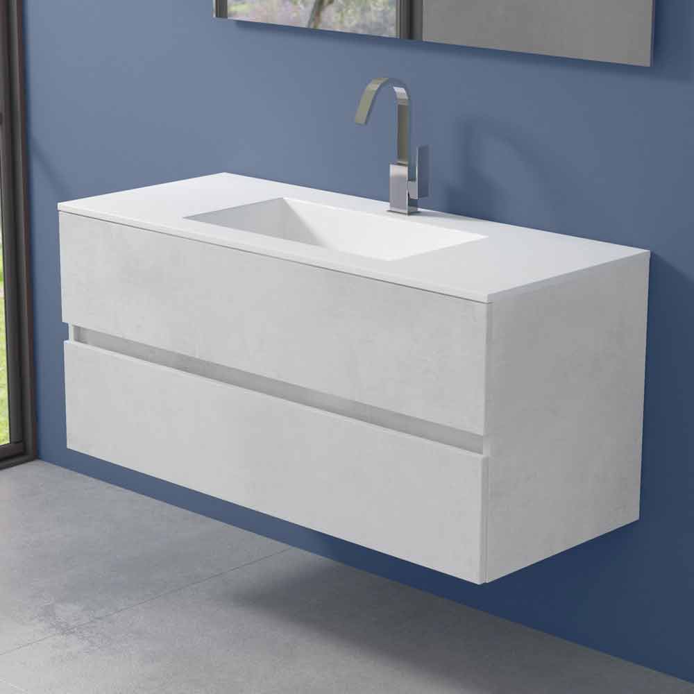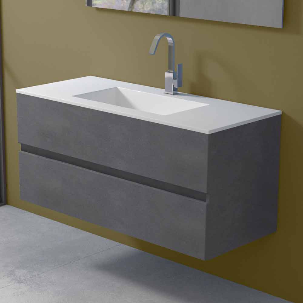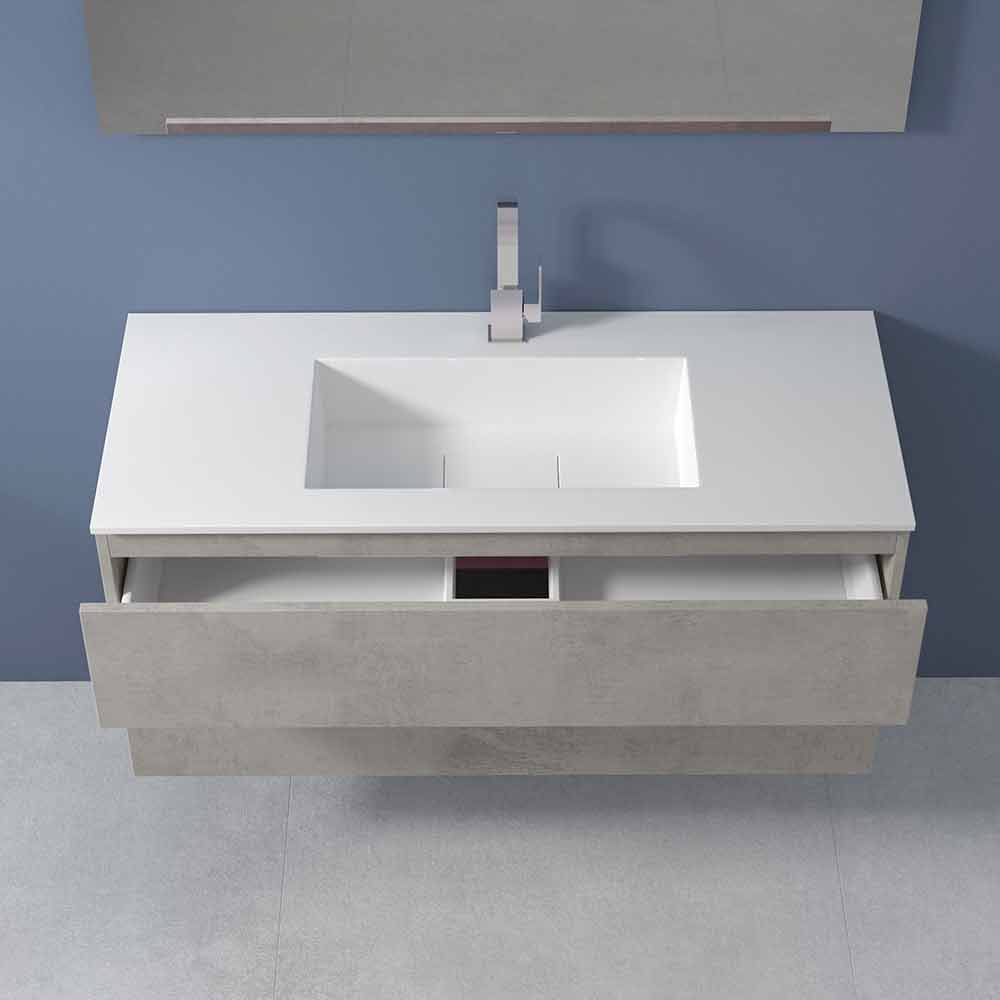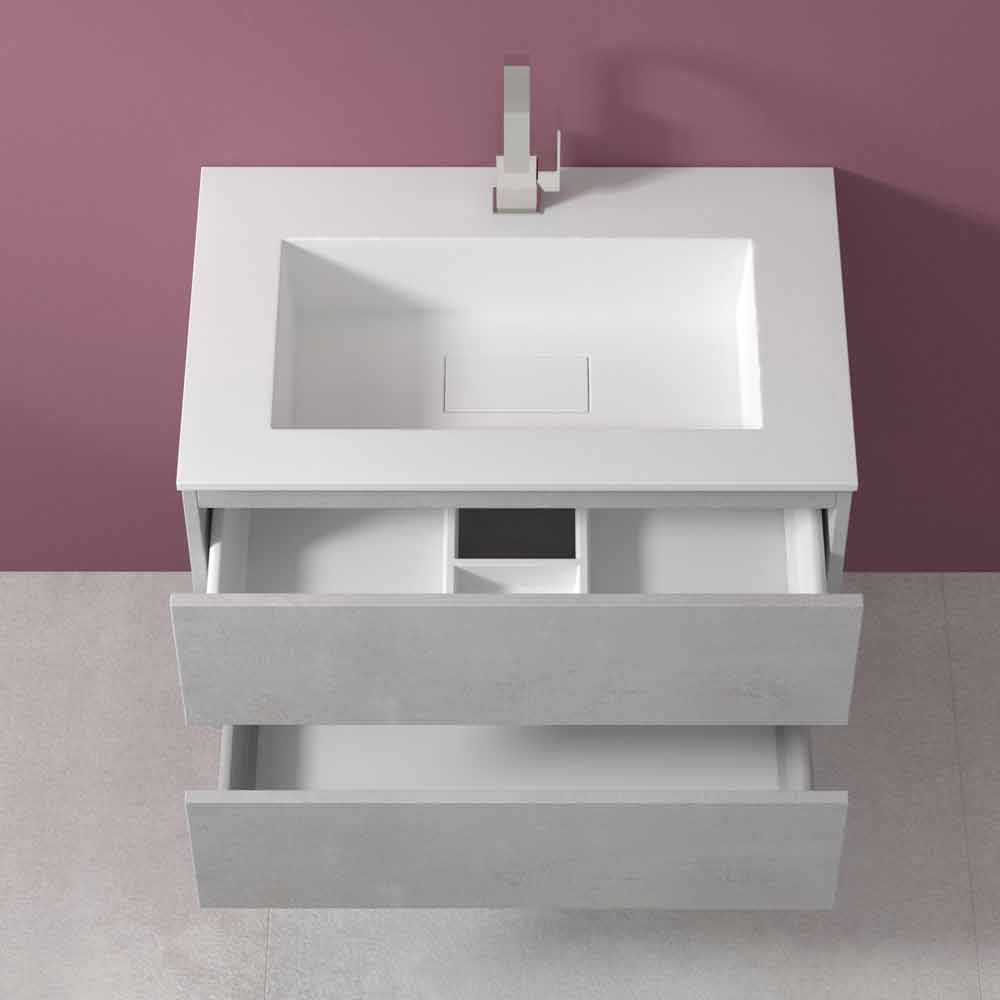 Isshtë një mobilje banjo e varur me lavaman drejtkëndëshe të integruar, i aftë të garantojë jo vetëm praktikën dhe funksionalitetin, por edhe një atmosferë të sofistikuar dhe moderne, për një dizajn të përjetshëm.