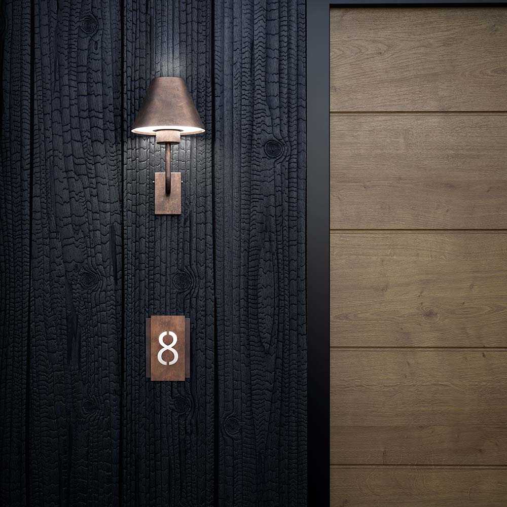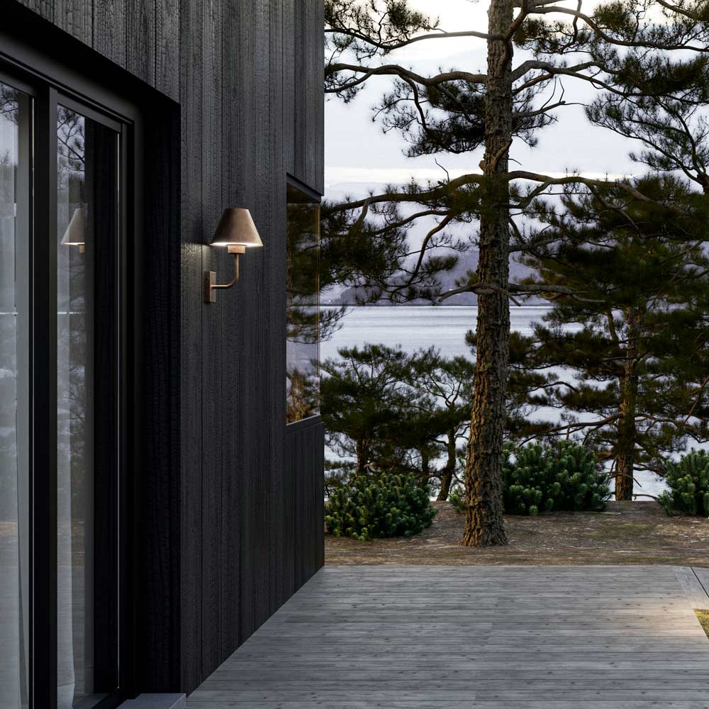 Dritë muri të jashtëm i bërë me kornizë bronzi antike dhekokënë bakër antikdhe dritë dydrejtimëshe tërësisht Prodhuar në Itali. Koleksioni i llambave të jashtme ka lindur nga dëshira për të sjellë karakteristikat e dizajnit të brendshëm në produktet e destinuara për jashtë, për të krijuar atmosfera mikpritëse dhe familjare edhe në ajër të hapur. Me linja të frymëzuara nga estetika nordike, llambat e dyshemesë ose të murit janë prej bronzi dhe bakri.