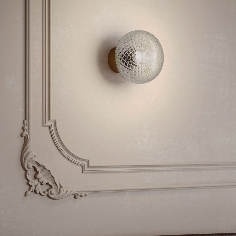 Drita muri e punuar me kornizë prej bronzi natyral dhe xham transparent griProdhuar tërësisht në Itali. Koleksioni i llambave kujton vlerën e shisheve të parfumeve dhe shpërndarësve të esencës orientale. Lloji i xhamit i jep jetë efekteve të ndryshme të dritës, më të mbytura ose më sensuale. Magjia e objektit është e gjallë si në pjesën e vetme ashtu edhe në kombinimin e variacioneve të shumta. Koleksioni përbëhet nga varëse, llamba tavoline dhe muri.