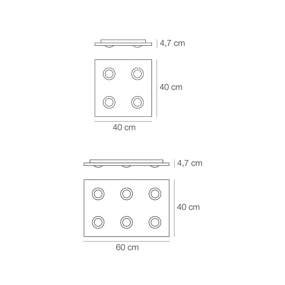 • gjatësi 40 cm x thellësi 4.7 cm x lartësi 40 cm - 4 drita - të errësueshme