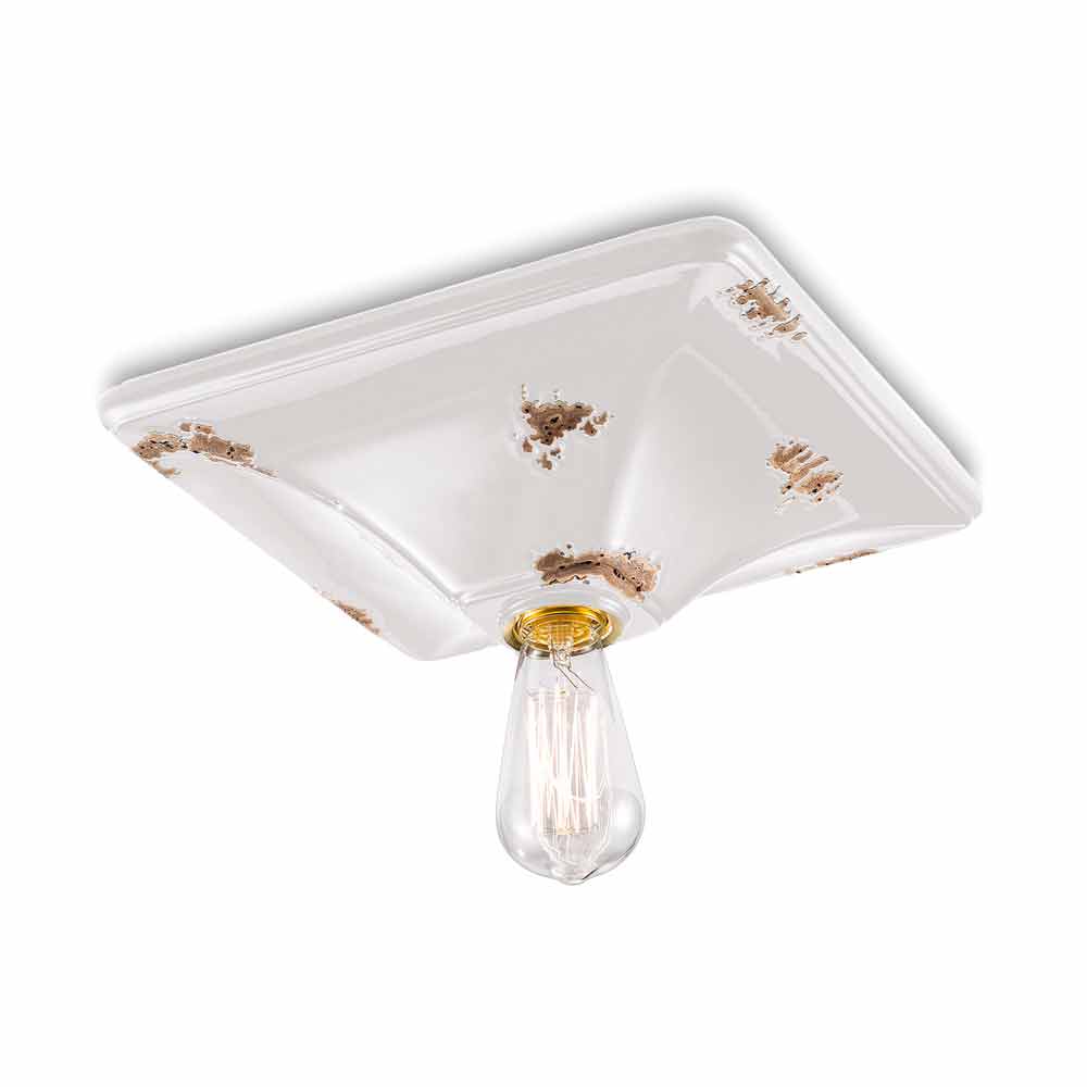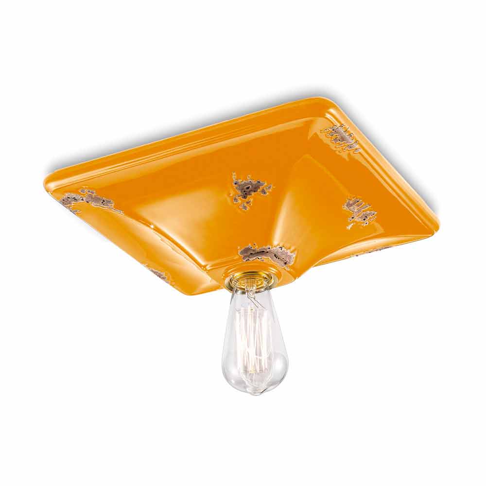 Dritë tavani qeramike Karen Ferroluce në stil retro Karen është një dritë tavani fantastike, e punuar me dorë në qeramikë nga artizanë të aftë në Itali. Karen është një llambë tavani minimale dhe funksionale, e përbërë nga një bazë në formë katrore. E veçanta e kësaj llambë qëndron në përpunimin e përfundimit të saj të jashtëm, të dekoruar në mënyrë të tillë sikur koha t'i kishte shënuar rrugën. Riprodhimi i erozionit të kohës i kombinuar me sipërfaqet me shkëlqim i japin atë vlerë shtesë kësaj llambë tavani. Ideale për ambiente me stil urban dhe shije vintage. Karen përbëhet nga një dizajn thelbësor dhe elegant, i cili ruan esencialitetin e përdorimit dhe siguron një ekuilibër delikat midis formave dhe toneve. Detaje të vogla për një efekt të shkëlqyer me një aromë antike! Llamba e disponueshme në përfundime të ndryshme. Kontrolloni grafikun e ngjyrave dhe vendosni kodin e përfundimit që dëshironi në kutinë e duhur!