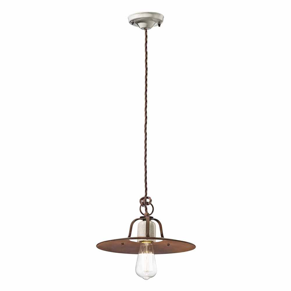 Llamba pezulluese e stilit industrial nga Ferroluce Kurorë e gjerë dhe lartësi lehtësisht e rregullueshme falë kabllit të gërshetuar që plotëson stilin industrial. Detaje metalike dhe qeramike me ndryshk mat për të kompletuar një ekuilibër të formave të plota dhe të zbrazëta. Është frymëzuar nga stili rustik amerikan. Kjo llambë, me ngjyrat e saj të zbehta dhe një shije të gjallë, është e thjeshtë dhe e përjetshme. Dritë e pastër pa mbrojtje.