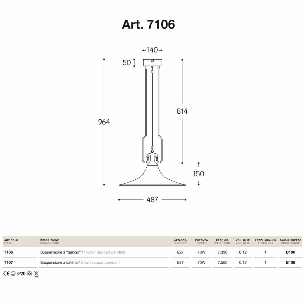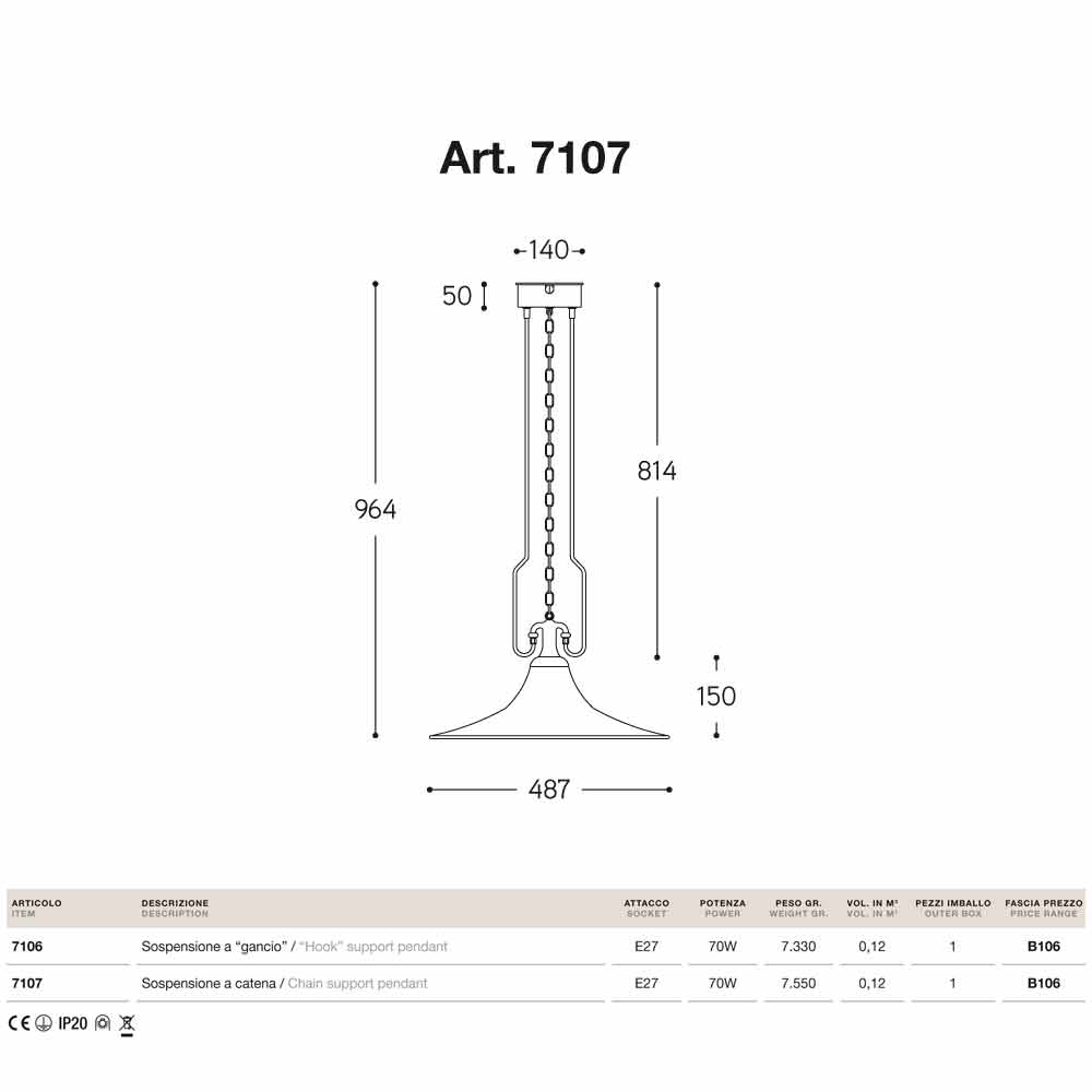 Foleja E27 Fuqia 70 W Pesha con gancio 7330 gr, con catena 7550 gr IP 20 Llamba nuk përfshihet
