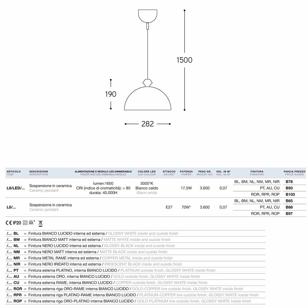 < Moderne dizajn qeramike varëse dritë ILustri8 nga AldoBernardi. I Lustri 8 është në dispozicion me përfundime të ndryshme dhe me prizë standarde të llambës E27 ose dritë LED.