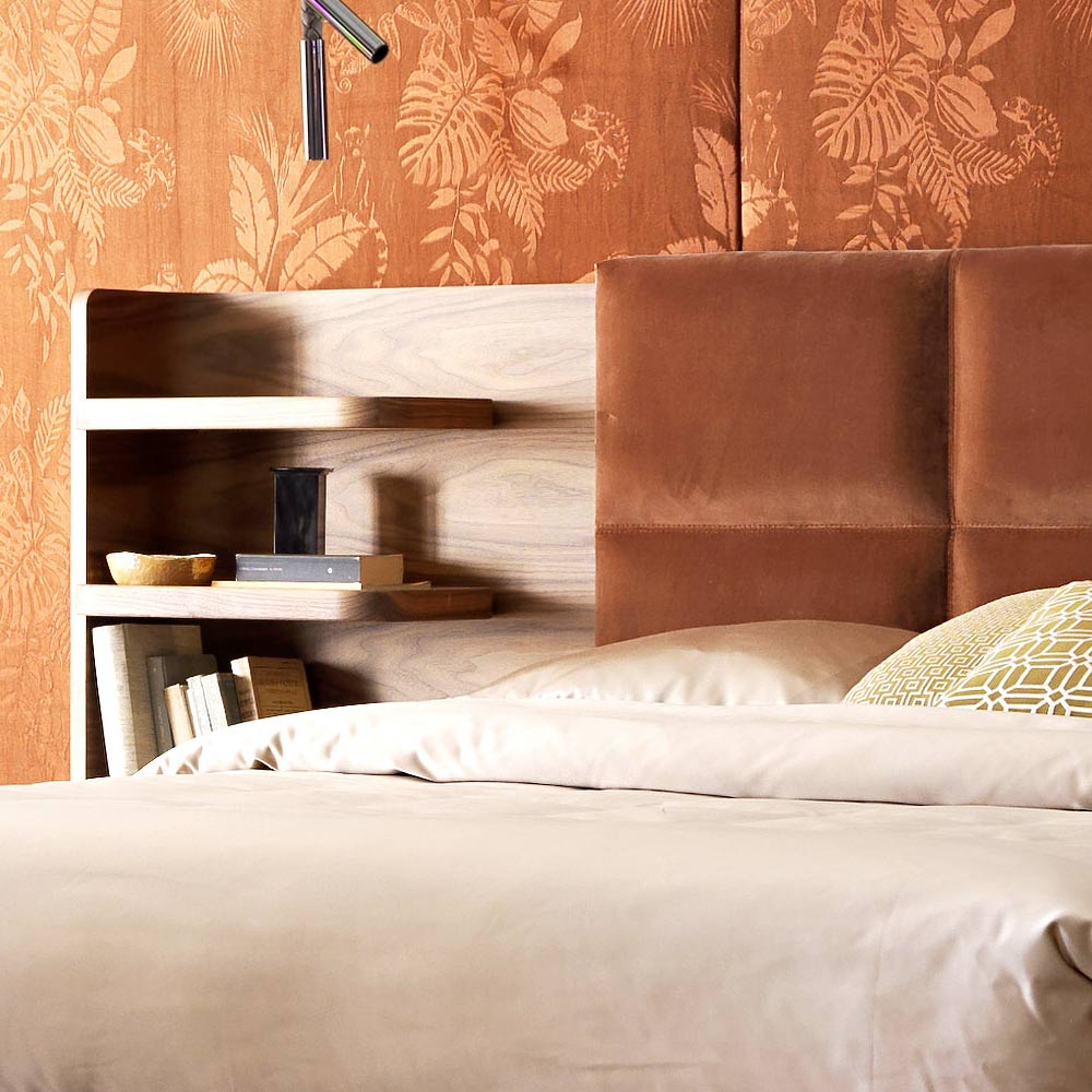 Headboard është i mbushur me tegela në pëlhurë prej kadifeje dhe nuk mund të hiqet.