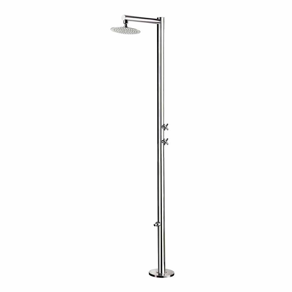 Ideale për zona të tilla si resortet bregdetare dhe objektet turistike, por edhe për mjedise private si pishinat dhe kopshtet, kjo kolonë dushi për jashtë mund të jetë një ide e përsosur për t'u freskuar gjatë ditëve të nxehta dhe me diell, për t'u pastruar para se të zhyteni në pishinë dhe, sapo të dilni, për të eliminuar çdo mbetje të klorit ose produkteve të tjera kimike që përmbahen në ujë. Larësja praktike e këmbëve me ajrosje ju lejon gjithashtu të merrni një trajtim shtesë duke maksimizuar anën e saj funksionale.