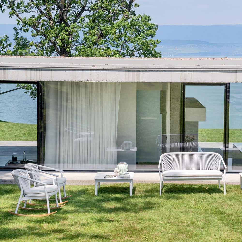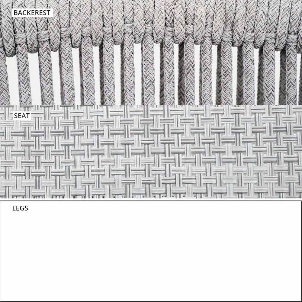 Gërshetimi i mbështetëses në kordonin sintetik VAR # TEX rrit estetikën e kësaj divan të krijuar për të shijuar ditët në natyrë në shoqëri.