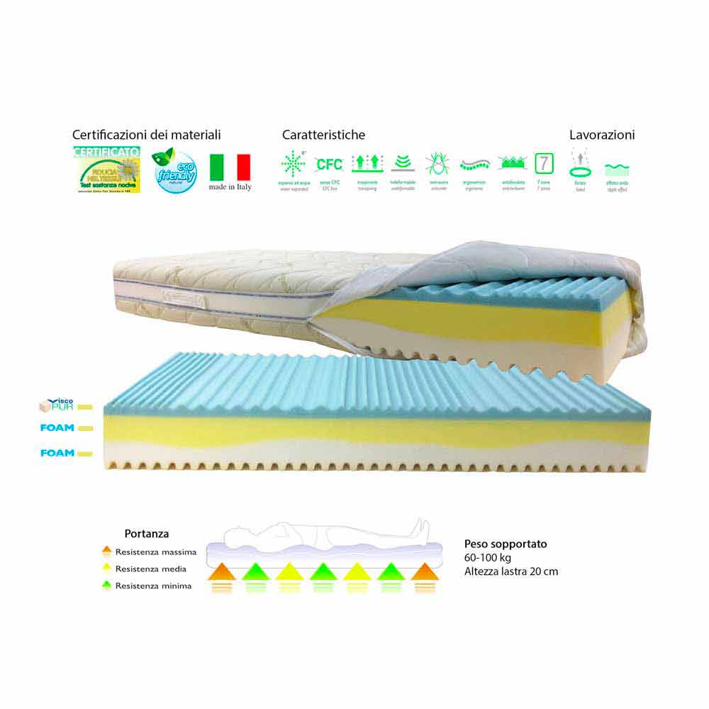 Shtresat, format, 7 zonat e diferencuara janë krijuar për të garantuar pozicionin natyral të pushimit, duke lejuar shtyllën kurrizore të ruajë gjithmonë konformitetin e saj ideal.