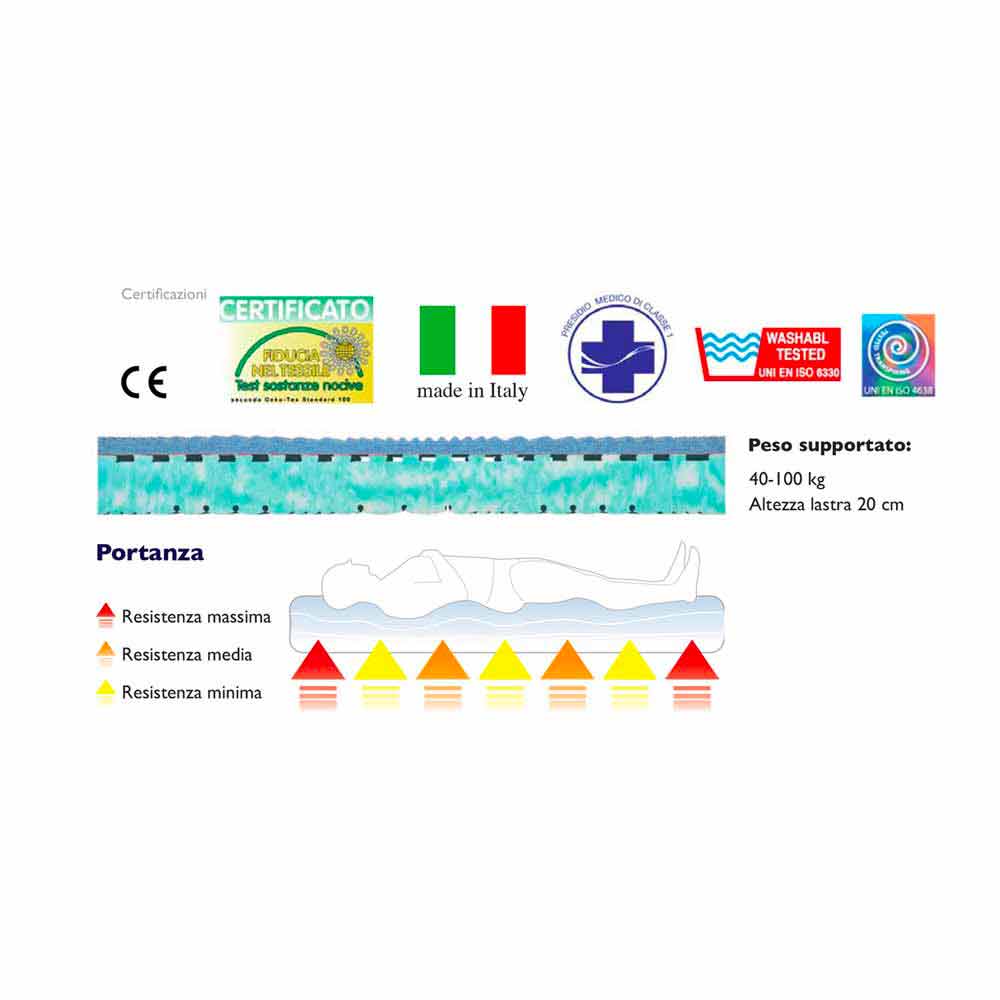 Dysheku Bio nature përdor një nga më inovativët dhe teknologjik, jo vetëm në nivel produkti, por edhe vendosjen e dyshekut. Në fakt, pjesa e sipërme përbëhet nga një shtresë memorie të ndjeshme në formë me valë masazhuese me gjerësi të ndryshme për të siguruar efektin e zonave 7 dhe, falë strukturës së saj të veçantë, në gjendje të dëbojë të gjithë nxehtësinë e tepërt të trupit përmes poreve të shumta të të cilave është konstituuar. Frymëmarrja më e mirë garantohet edhe nga profili i veçantë dhe nga vrimat që lidhen meshtresën eshkumës memorike "Nature" që mbështet në një peshë trupore korrekte dhe efektive, kjo e formësuar edhe në fund për të lehtësuar përdorimin e këtij produkti në rrjete. i mekanizuar. Duke mos u ngjitur, pjesa në Memory airsensitive rezulton të jetë plotësisht e lëvizshme dhe e larë, një operacion që nuk mund të kryhet në produkte konvencionale dhe nuk është i testuar. Për këtë arsye ne rekomandojmë përdorimin e këtij dysheku, të çertifikuar si pajisje mjekësore e klasit I, të kombinuar me një veshje të projektuar posaçërisht me majë të integruar. Pesha e duruar 60 / 120 kg për person Veshje me brez 3D me frymëmarrje. Të gjitha veshjet janë bërë me pëlhurë shtrirëse që ngjitet në mënyrë të përsosur, janë ideale për ata që dëshirojnë të rrisin cilësinë dhe karakteristikat e dyshekut tuaj. Falë valës drejtkëndore ose të diferencuar, astaret kanë një strukturë të butë dhe të butë, me aftësinë për të shkrepur lehtë formën e avulluar dhe të lehtë pas ngjeshjes. Në fakt ju mund të lani dhe thani, pa ndonjë trajtim të veçantë për shkak të elasticitetit të tyre natyral. Rezultati është një higjienik i përkryer, kundër grimcave dhe i qëndrueshëm në mënyrë që të ruajë karakteristikat në kohë. Për të arritur një nivel të lartë frymëmarrjeje, veshjet janë të pajisura me një brez 3D i cili lejon një qarkullim më të mirë të ajrit për të siguruar një mikroklimë perfekte brenda dyshekut.