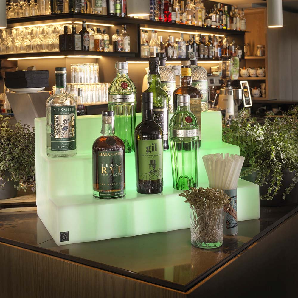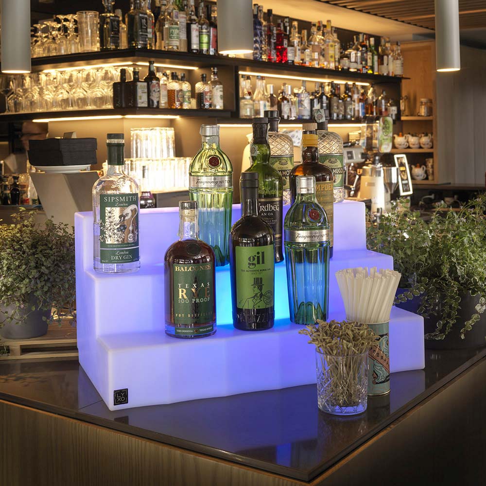 Ekran i shisheve Marvy në polietileni i përbërë nga tre hapa të mëdhenj që ju lejojnë të akomodoni lloje të ndryshme shishesh për ta bërë zonën e barit elegant dhe modern me një prekje të dizajnit klasik italian . Ekrani që ndizet me opsionin e dritës LED të bardhë ose RGBW LED , sipas gjykimit tuaj. Një zgjidhje me një ndikim të madh vizual, tërheqës estetikisht por edhe funksionale.