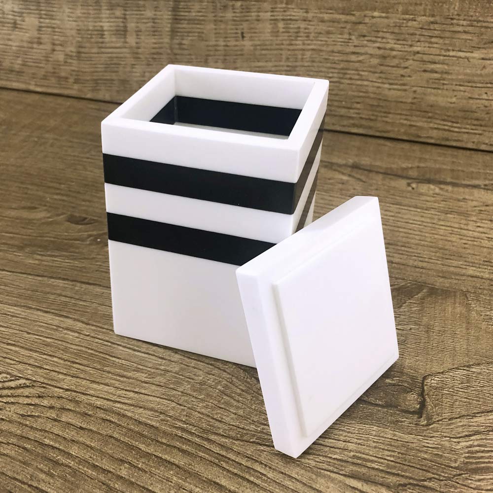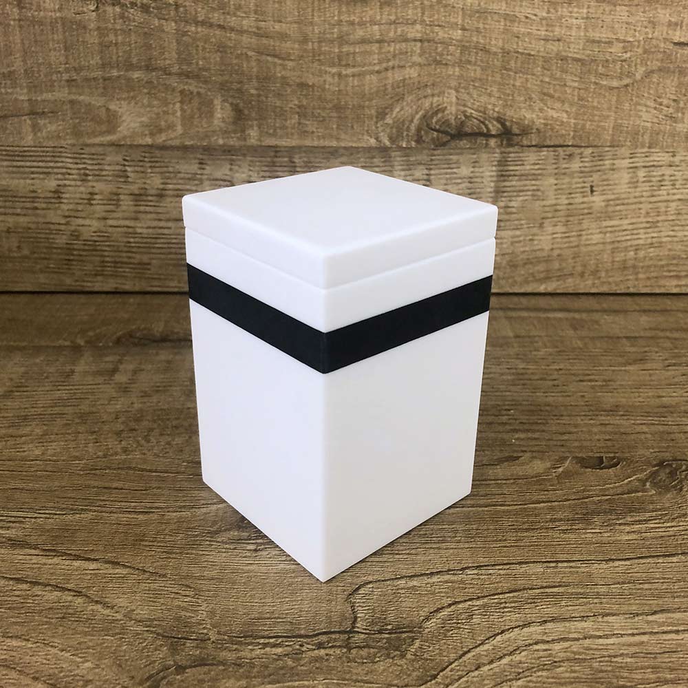 Isshtë bërë tërësisht nga Corian i bardhë metrashësi 6 mm dhe është prodhuar tërësisht në Itali . Falë materialit të përdorur, ky aksesor kuzhine me kapak është shumë rezistent dhe higjenik.