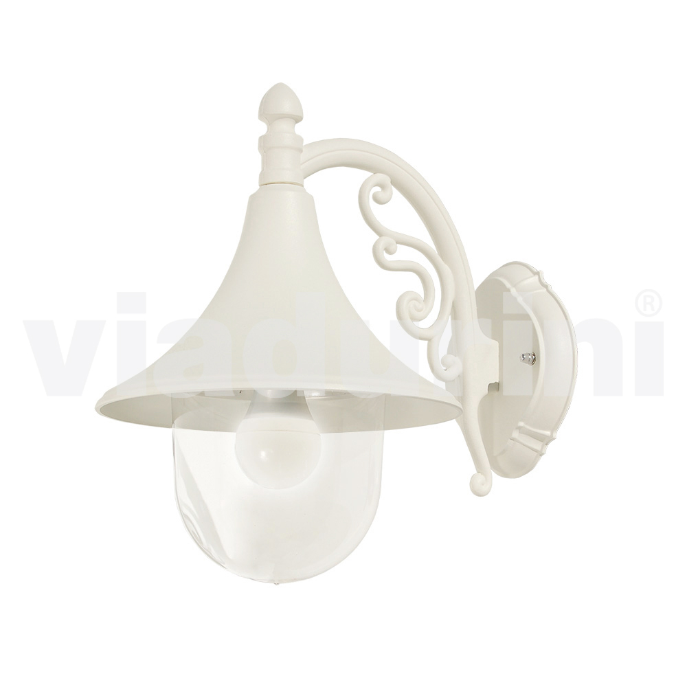 Fener kopshti muri nga alumini i bardhë i prodhuar në Itali, Anusca Anusca është një llambë relative e rafinuar e jashtme e punuar me dorë në Itali me material cilësor: strukturë alumini të derdhur dhe shpërndarës polikarbonat i disponueshëm në variantet e mëposhtme: transparent (garanton shpërndarje optimale dhe gjithmonë homogjene të dritës); opal dhe i tymosur.