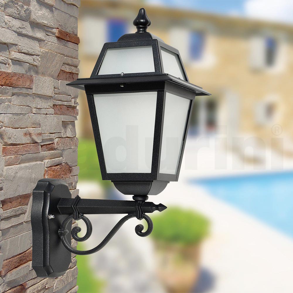Llamba kopshti e bërë me strukturë alumini të derdhur në formë antraciti dhe shpërndarës xhami me rërë , tërësisht Prodhuar në Itali.