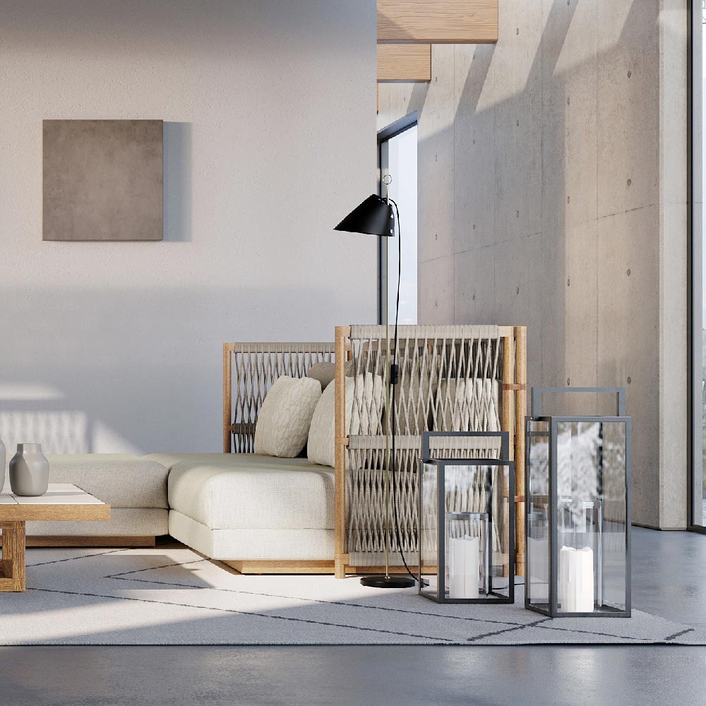 Fener kopshti tërësisht i prodhuar në Itali me strukturë alumini të lyer me ngjyrë të zezë mat me një efekt elegant antik të punuar me dorë. Muret janë në xham transparent dhe doreza rrethore e vendosur në fund është në të njëjtin material si struktura. Ky fener është projektuar për të ndriçuar dhe dekoruar hapësirat e jashtme, duke krijuar peizazhe magjepsëse drite dhe një atmosferë të ngrohtë dhe mikpritëse. Falë linjave elegante, është e përkryer për të kompletuar dekorin e çdo ambienti, duke marrë frymëzim nga atmosfera simpatike dhe tipike e qiririt , e riinterpretuar në një çelës modern.