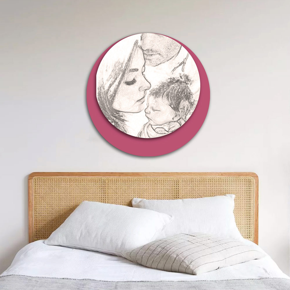 Panel tërësisht prej druri me stampim familjar . Dashuria, dashuria, mbrojtja janë emocionet që lindin kur shikon këtë pikturë në të cilën familja është e bashkuar dhe ka një lojë shikimesh ku ai e shikon atë, ajo shikon djalin e saj që është përballë saj. Finiturat, druri i zgjedhur për prodhimin dhe teknika e printimit nxjerrin në pah të gjithë cilësinë e një elementi të prodhuar në Itali, i cili i jep vetes kompletimin në mënyrë perfekte të arredimit të çdo ambienti, duke i dhënë atij një atmosferë të ngrohtë dhe mikpritëse.