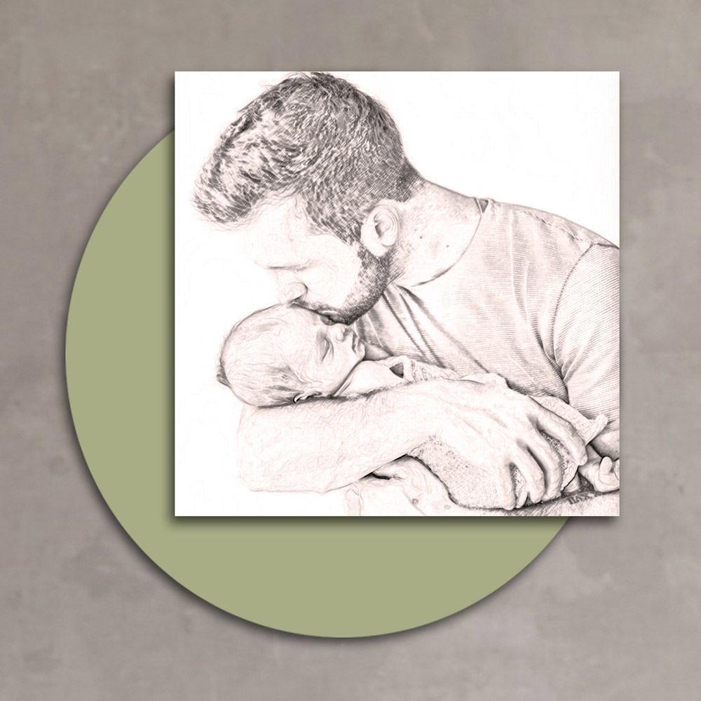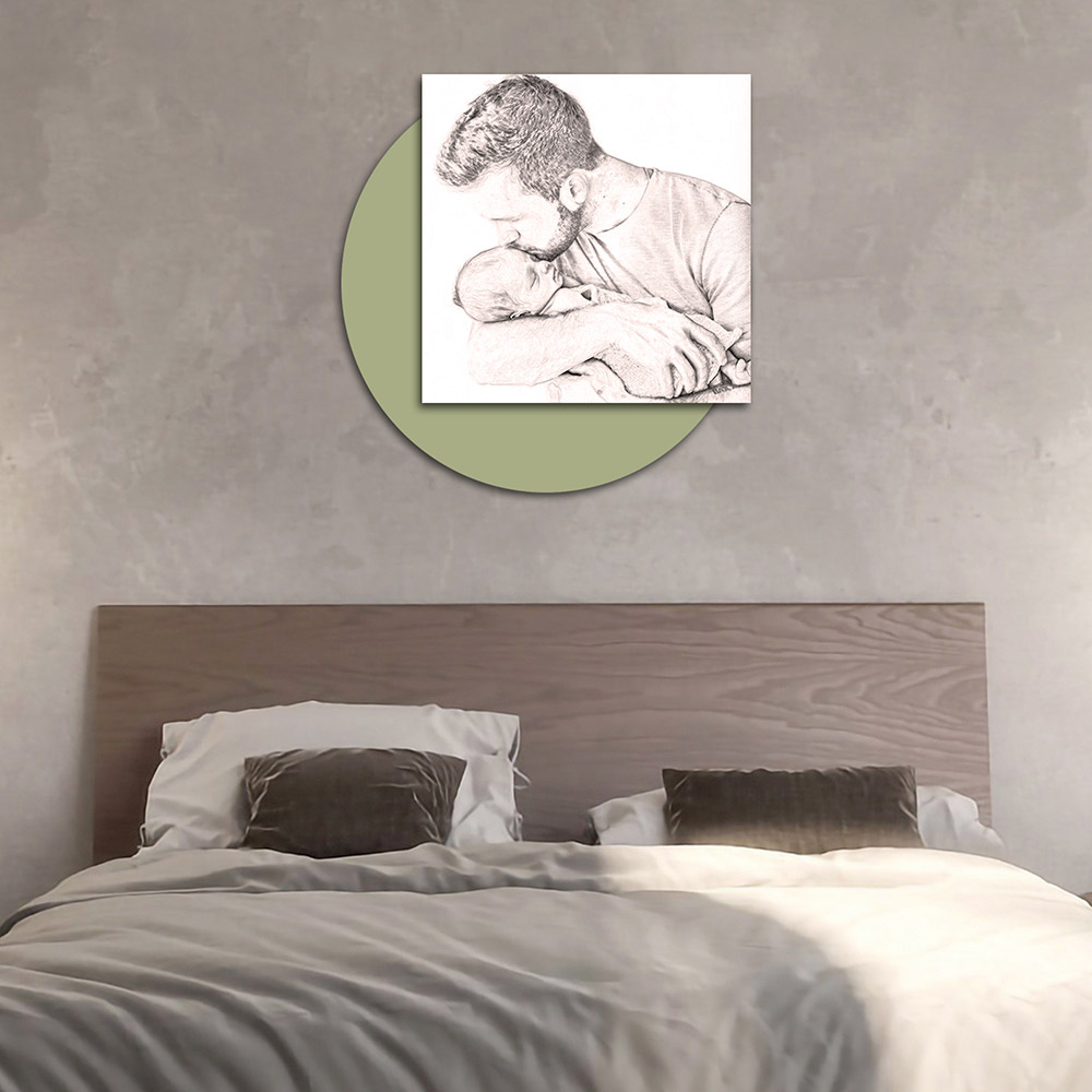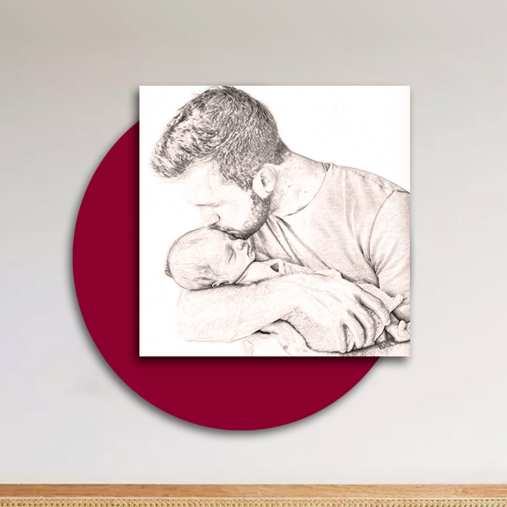 Paneli i bërë tërësisht prej druri me një printim të një burri që puth një fëmijë. Delikatesa dhe dashuria që lind nga kjo puthje e babait në ballin e djalit janë unike dhe arrijnë drejt e në zemrën e atyre që e shikojnë. Finiturat, druri i zgjedhur për prodhimin dhe teknika e printimit nxjerrin në pah të gjithë cilësinë e një elementi të prodhuar në Itali, i cili i jep vetes kompletimin në mënyrë perfekte të arredimit të çdo ambienti, duke i dhënë atij një atmosferë të ngrohtë dhe mikpritëse.