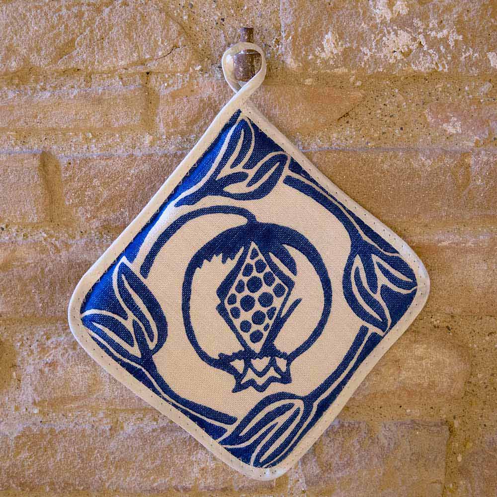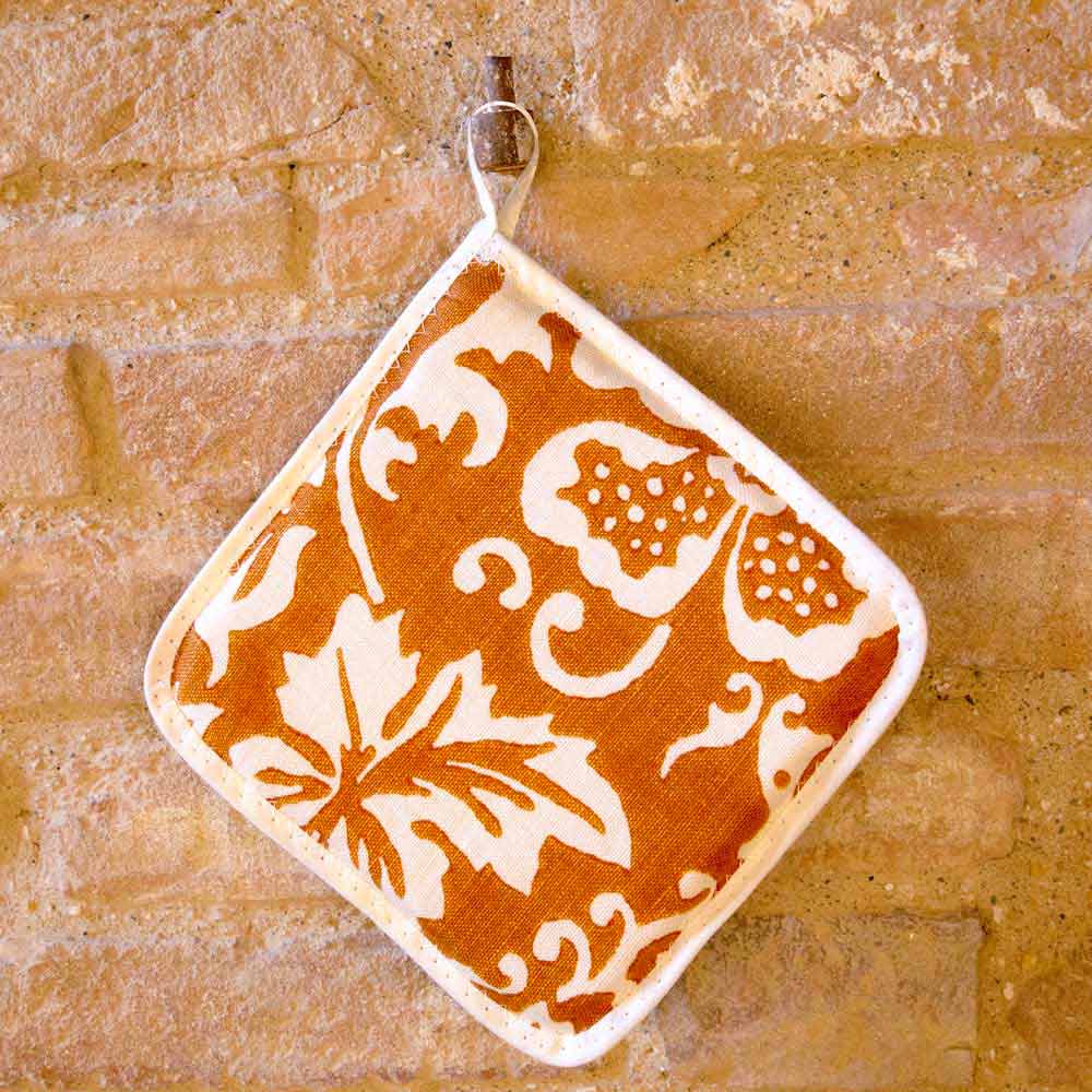 Potholders në liri të pastër të zejtarisë së lartë italiane të zbukuruar me një model të lashtë të shtypur me dorë, të disponueshme në pesë variante, një vepër unike arti e bërë në Itali.