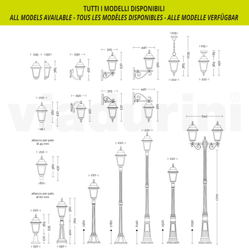 Llambë kopshti e bërë me strukturë alumini të derdhur në formë antraciti dhe difuzor xhami transparent , tërësisht Prodhuar në Itali.