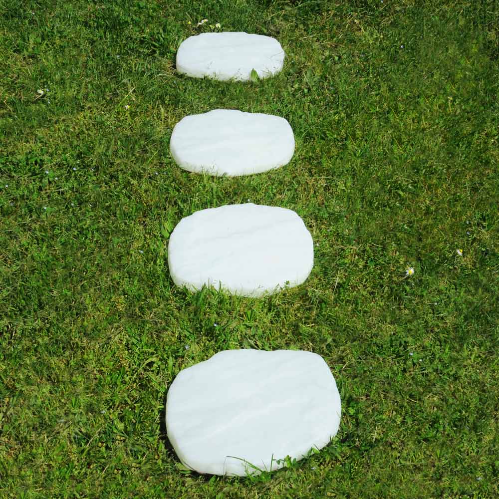 Shenjat e hapave të kopshtit në formë guri me të cilët mund të vizatoni shtigje në kopsht që janë të dukshme edhe gjatë natës. Ai i reziston temperaturave të larta dhe të ulëta, goditjeve të dhunshme, rrezeve ultravjollcë, si dhe të gjitha llojeve të motit dhe ruan formën e tij të paprekur me kalimin e kohës. E disponueshme në versionin fluo white ose fluo blu . Pigmentimi i veçantë fluoreshent bën që pllaka të grumbullojë dritë natyrale dhe artificiale gjatë ditës dhe gradualisht ta lëshojë atë gjatë natës, duke prodhuar një shkëlqim magjik deri në mëngjes. Pigmenti fluoreshent është jo toksik dhe plotësisht i padëmshëm për shëndetin. Çdo paketë përmban 4 copë.