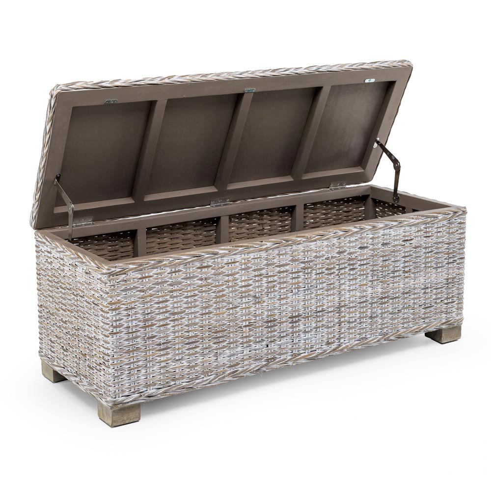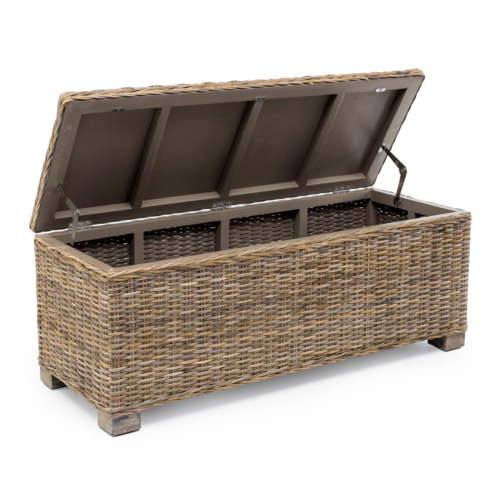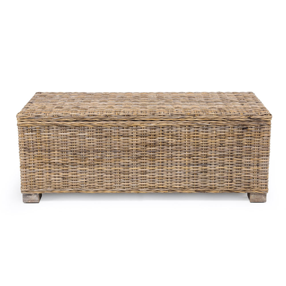 Produktet në këtë koleksion janë të endura me dorë duke përdorur vetëm fibra dhe materiale natyrale të cilat, për shkak të karakteristikave të tyre të brendshme, mund të paraqesin parregullsi, papërsosmëri dhe dallime ngjyrash (kushte që mund të ndodhin edhe disa kohë pas blerjes). Për të garantuar një jetë më të gjatë të produktit me kalimin e kohës, rekomandojmë shmangien e ekspozimit të zgjatur ndaj rrezeve të diellit, shiut, lagështisë dhe ndryshimeve të larta të temperaturës (faktorë që mund të dobësojnë fibrën, t'i nënshtrohen thyerjes dhe favorizojnë shfaqjen e mykut). Nëse produkti është i ekspozuar ndaj kushteve veçanërisht të lagështisë së lartë, ju rekomandojmë ta lini të thahet shpejt dhe plotësisht, duke shmangur gjithmonë rrezet e diellit direkte. Përmasat : L 120 x D 46 x H 46.
