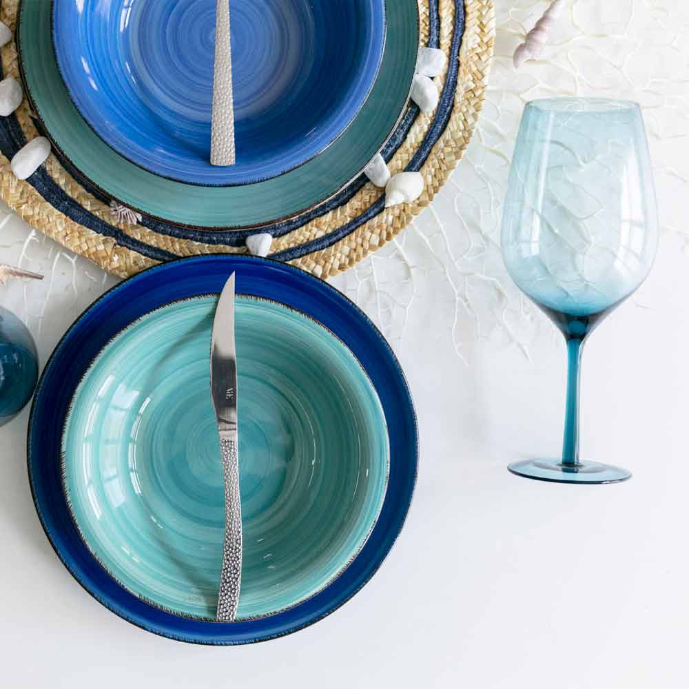 nuancat e blusë na çon në nuancat e jeshiles aku, duke përmbushur neutralitetin e këndshëm të së bardhës, duke krijuar një atmosferë të