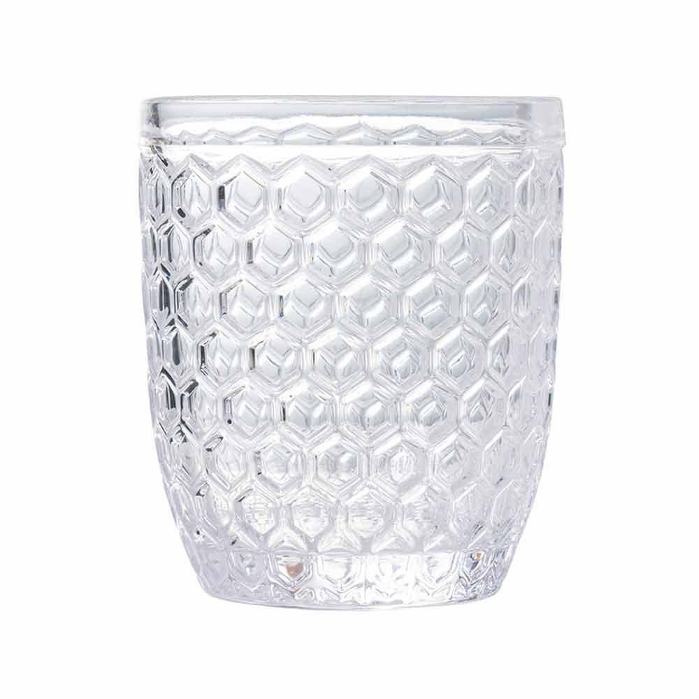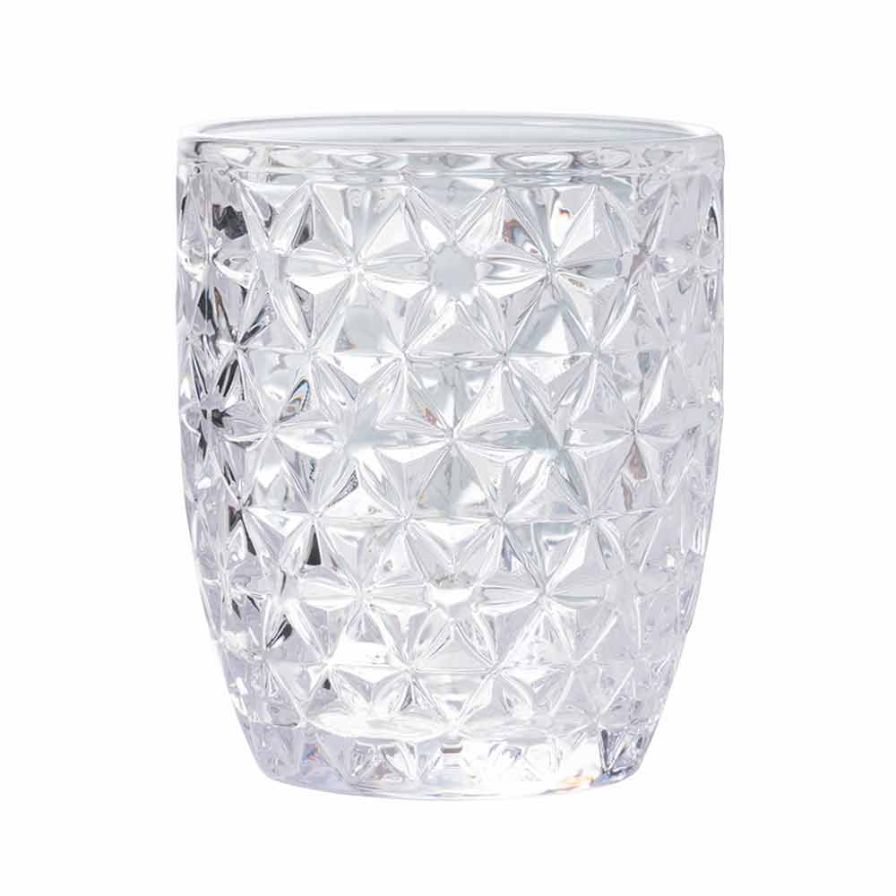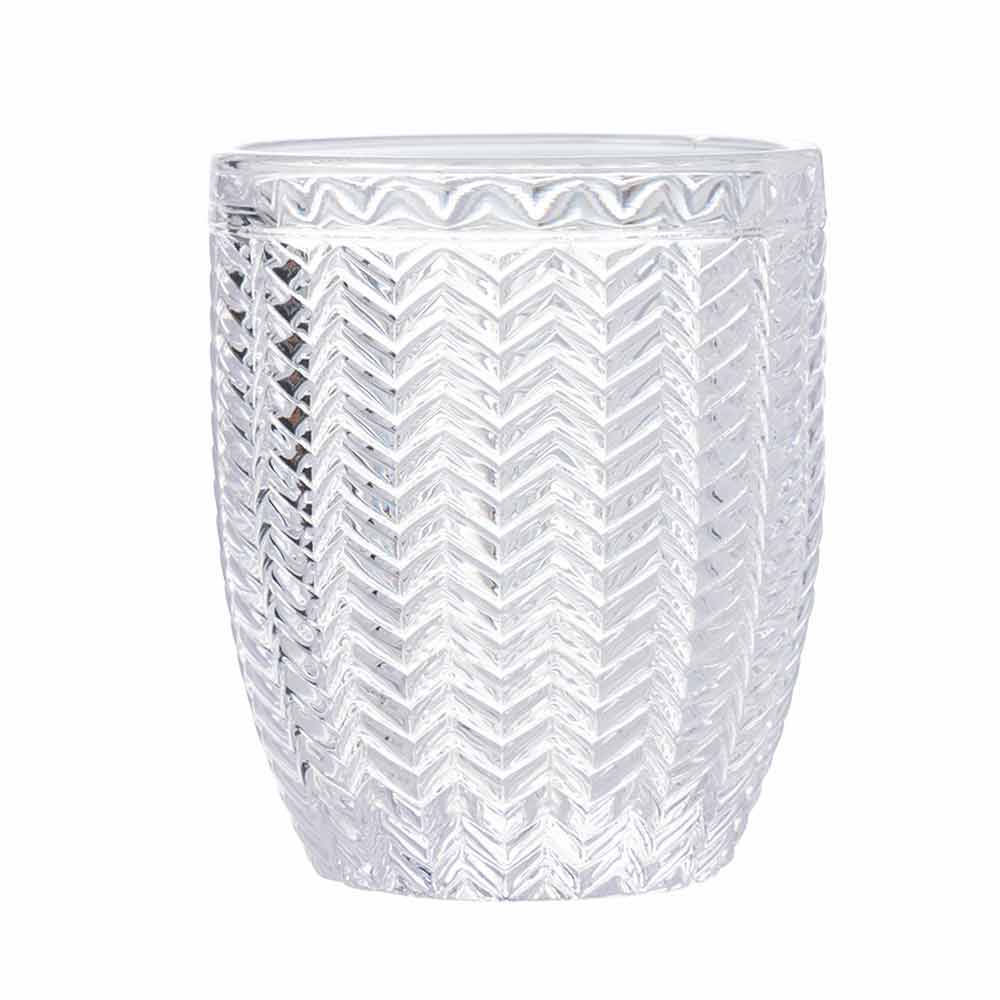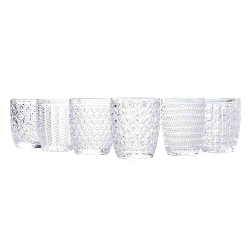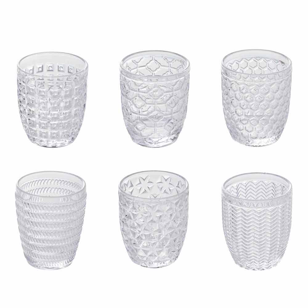 Set i gotave për ujë të bëra prej qelqi transparent të zbukuruar me gjeometri të ndryshme, 12 copë.