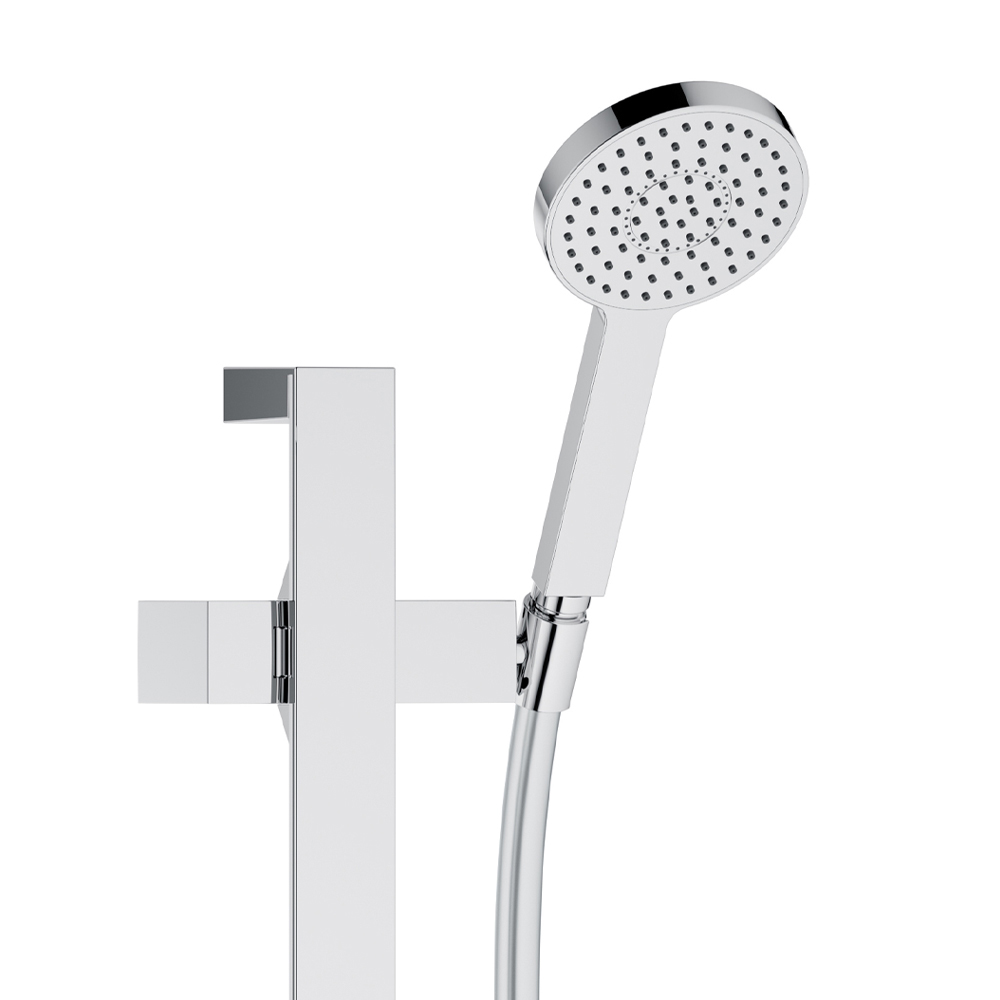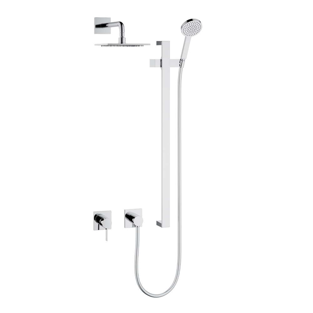 Kjo njësi e brendshme dushi me instalim të dyanshëm me mikser me një levë, lidhje me zorrë, mbështetëse dushi me dorë dhe kokë dushi ka një dizajn të thjeshtë dhe minimal me një zgjedhje rozete të rrumbullakëta ose katrore dhe është tërësisht prej bronzi të kromuar . Rezultati është një modul i vogël i karakterizuar nga një koncentrat inteligjent i teknologjisë inovative në një dizajn radikal dhe minimalist: përzierësi dhe lidhja e zorrës janë të lidhura në një mënyrë unike për përpjekje minimale instalimi dhe rehati maksimale funksionale.