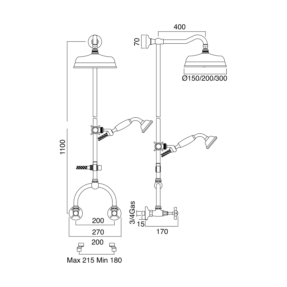 - L 27 x D 40 x H 110 cm Ø Kokë dushi 30 cm.