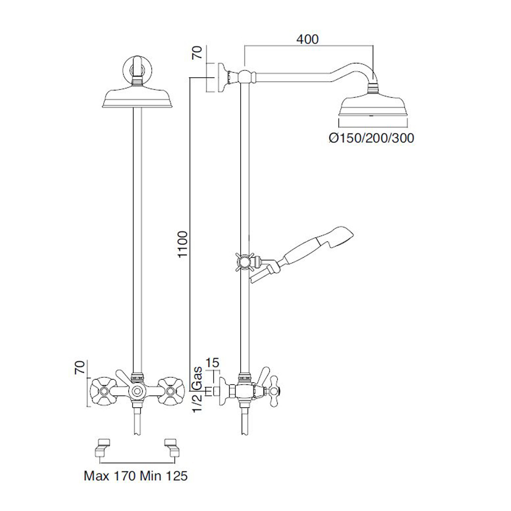 komplet dush i rafinuar dupleks me shufër dushi, çorape fleksibël, dush dore, krah dhe kokë dushi në 3 madhësi të ndryshme është tërësisht