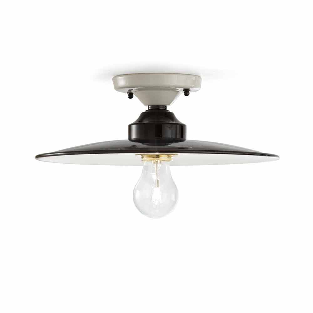 Dizajn llambë tavani në qeramikë me shkëlqim Jane Ferroluce Jane është një dritë fantastike tavani, e punuar me dorë nga artizanë të aftë në Itali. Llamba e punuar me qeramike, me difuzer te jashtem ne ngjyre te zeze me shkelqim, ndersa pjesa e brendshme e difuzorit dhe ngjitja e murit jane te bera ne ngjyre te bardhe me shkelqim. Jane është në dispozicion në madhësi të ndryshme. E veçanta e kësaj drite të bukur tavani përmbahet në formën dhe dizajnin e saj. E pajisur me një stil unik dhe origjinal, Jane sjell me vete një stil të rishikuar vintage-industrial, dhe është në gjendje të përshtatet me çdo mobilje, nga më të thjeshtat dhe minimalet, deri tek ato më klasiket, duke krijuar një kontrast delikat; e gjithë kjo është e mundur falë sipërfaqeve të saj të thjeshta, lineare dhe të pa zbukuruara. Ngjyrat e qarta dhe sipërfaqet me shkëlqim përcaktojnë profilin e kësaj drite fantastike tavani. Jane ka një dizajn aktual, duke ruajtur kujtesën e një stili të kaluar. Sillni një prekje të dizajnit edhe në shtëpinë tuaj dhe zgjidhni madhësitë më të përshtatshme për ju!