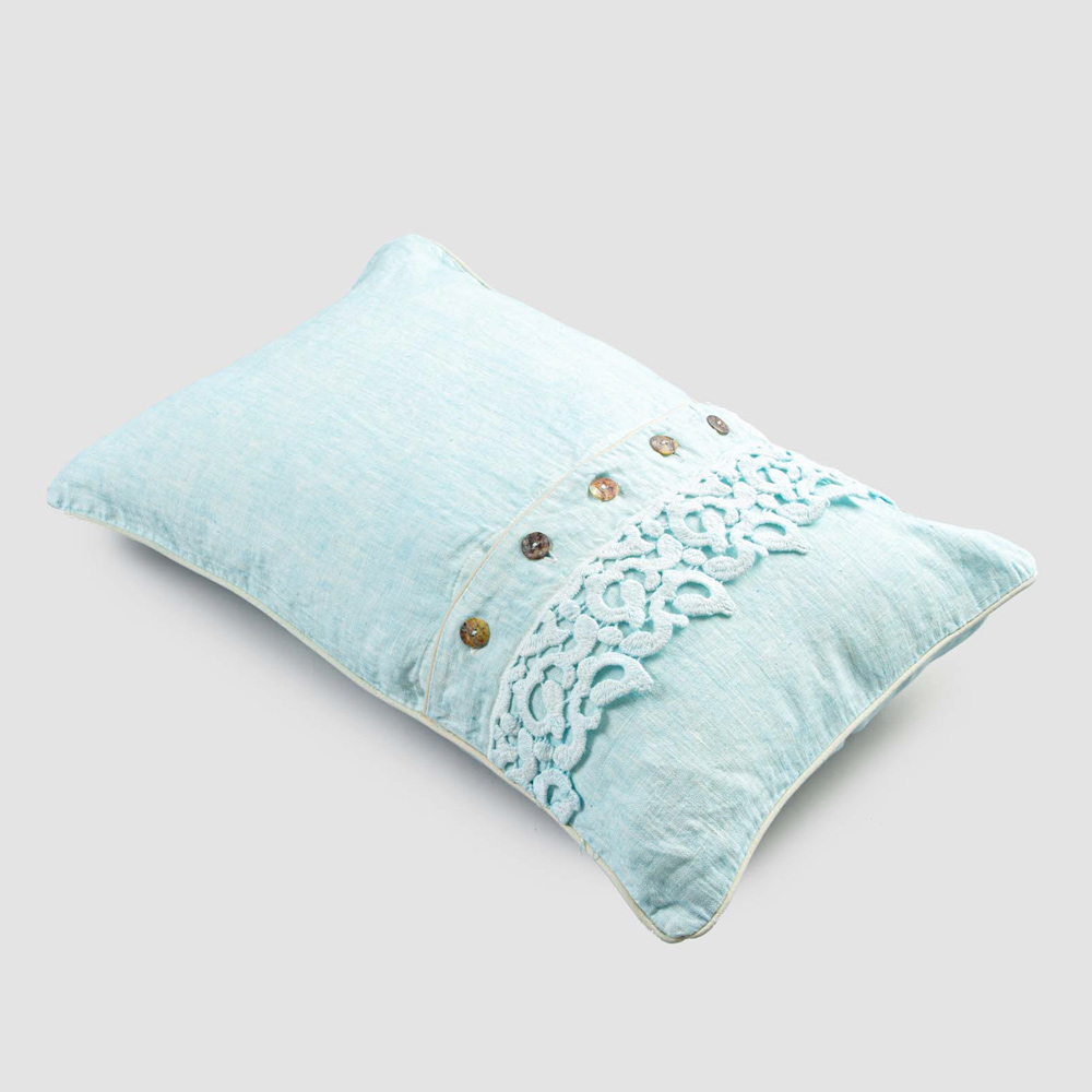 Jastëk jastëk në liri me ngjyra me dantella poezie, butona dhe tubacione luksoze të prodhuara në Itali.