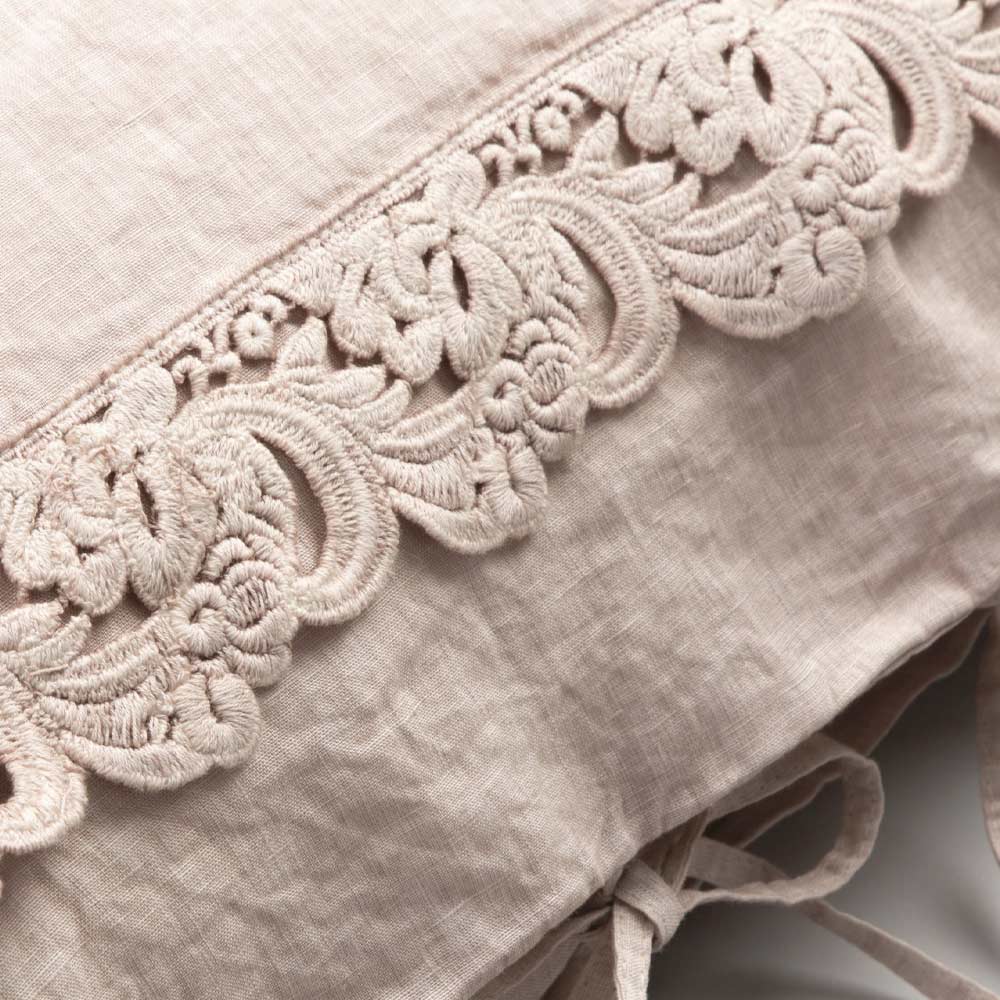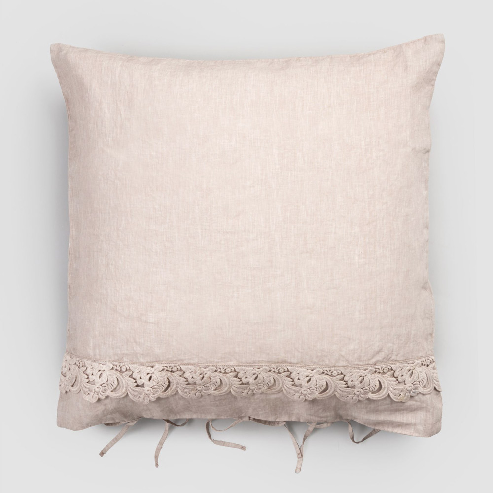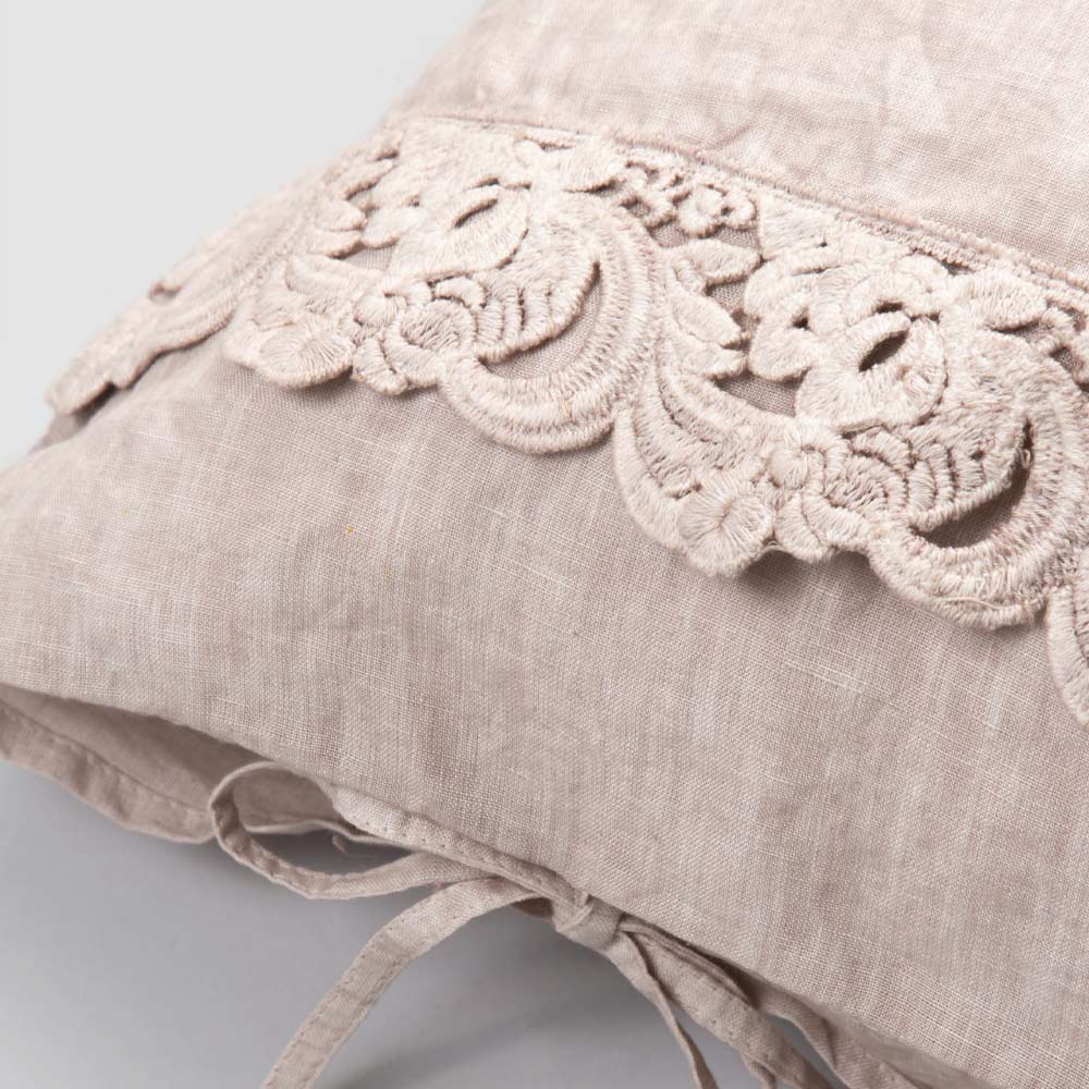 Jastëk katror në liri të pastër me dantella harmonie dhe butona me lidhëse, 2 ngjyra të prodhuara në Itali.