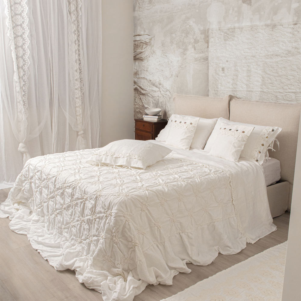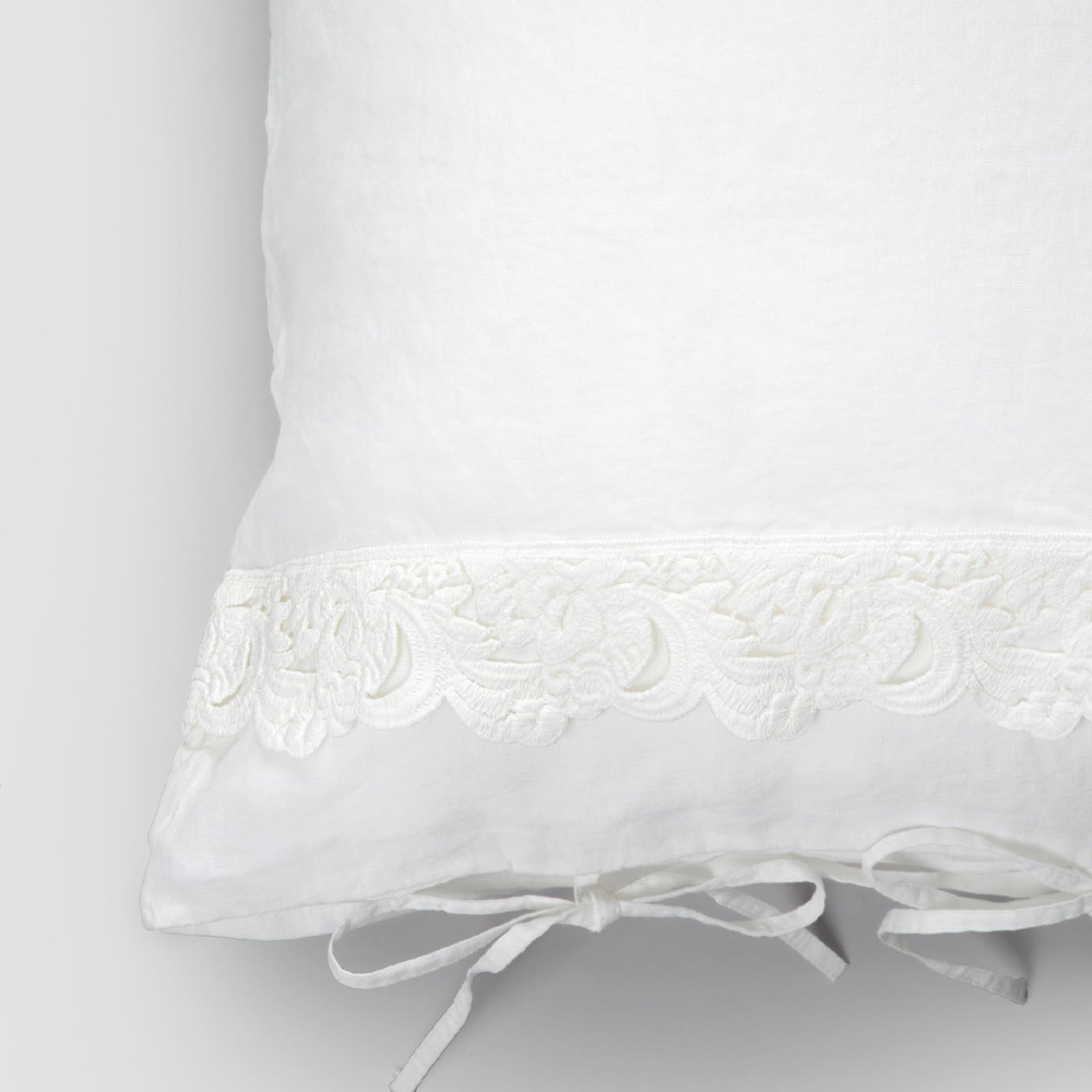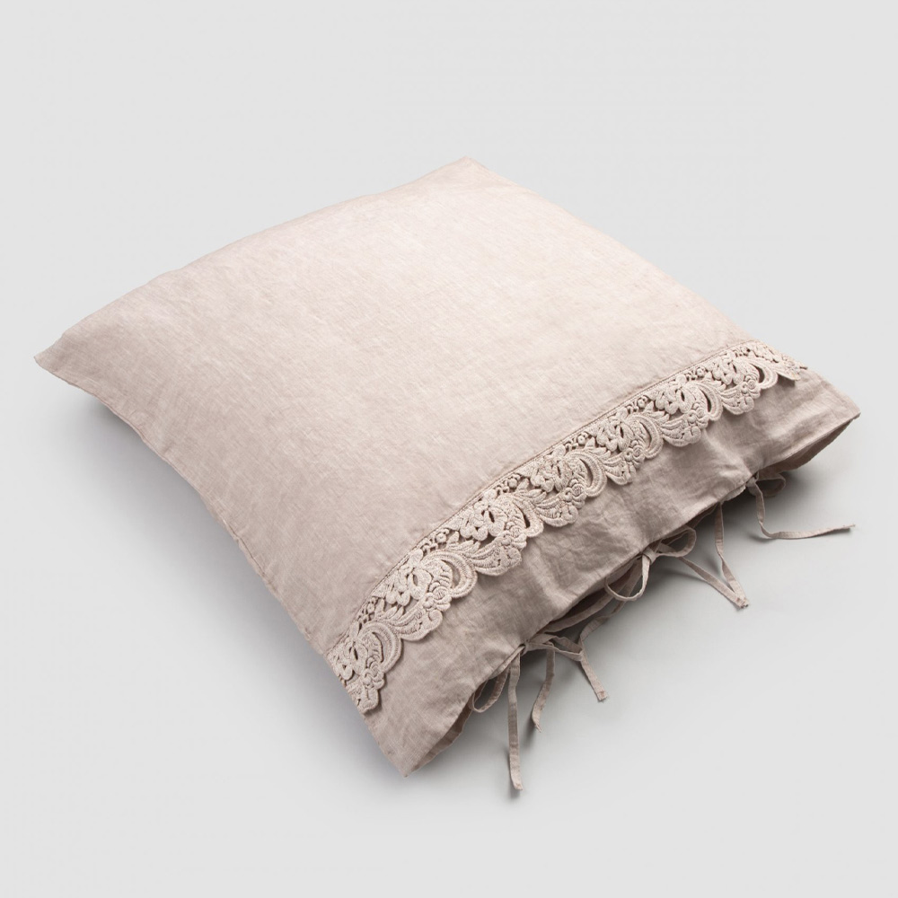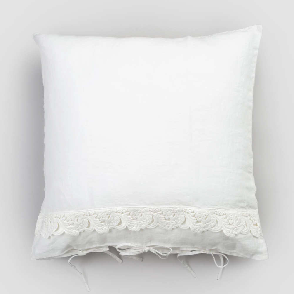 Jastëk katror në liri të pastër me dantella harmonie dhe butona me lidhëse, 2 ngjyra të prodhuara në Itali.