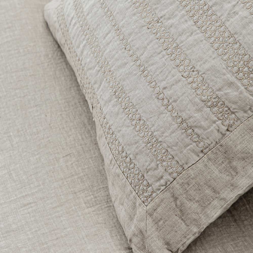 Këllëf jastëku katror në liri me qëndisje në 2 përfundime dhe prodhuar në Itali.