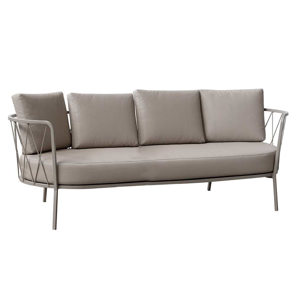 Divan kopshti prej çeliku me 3 vende me jastëkë të përfshirë. Prodhuar në Itali.