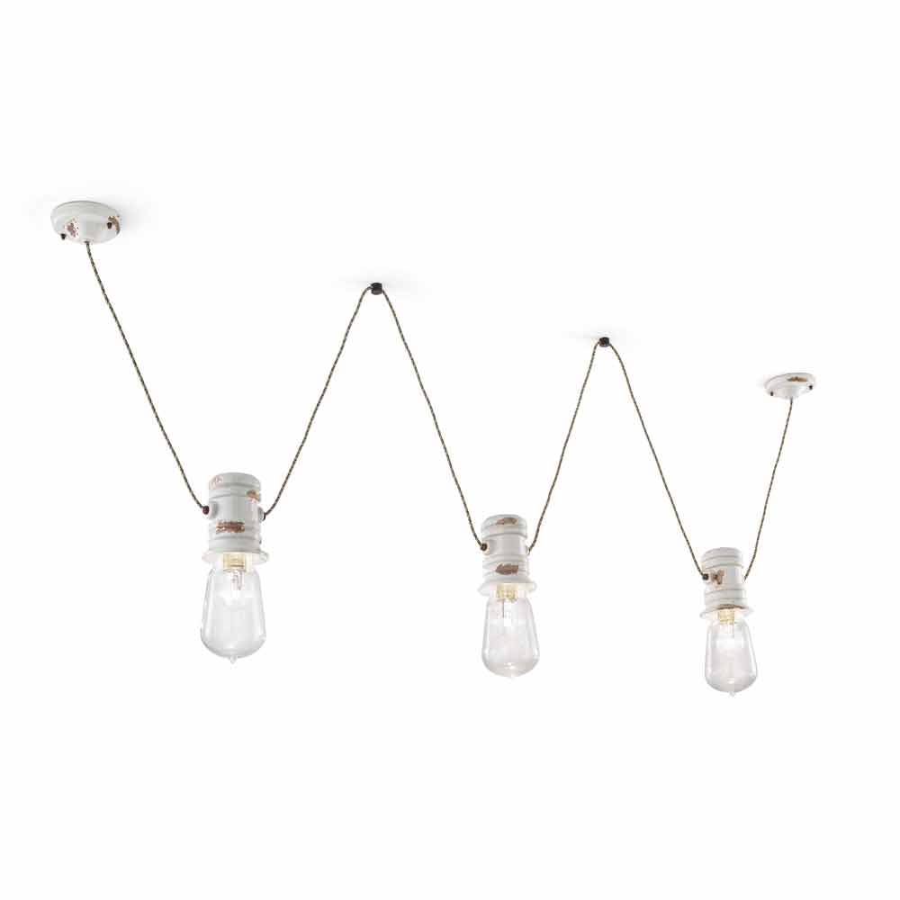 Llambë varëse me tre pika e punuar me dorë Jayda Ferroluce Jayda është një pezullim fantastik i përbërë nga tre dritat e vëmendjes, me një stil country-vintage. Pezullim i punuar me dorë nga artizanë të aftë në Itali. Jayda është një llambë origjinale me tipare të çrregullta, është një kombinim i qeramikës, qelqit dhe metalit, një bashkim që e bën atë unik në llojin e vet. Falë xhamit me shkëlqim, drita përhapet gjerësisht dhe ndriçon të gjithë dhomën në të cilën është futur. Efekti i lënë pas dore i sipërfaqeve është një detaj i dëshiruar i marrë përmes hapave të saktë teknikë. Falë përdorimit të glazurave që mund t'i japin sipërfaqes një aspekt të gjallë të prekshëm dhe vizual dhe ngjyrave retro, duket sikur koha e kishte shënuar rrugën e saj në vetë llambën. Një dizajn që i kundërvihet luksit por që bashkëjeton në harmoni me të. Ideale për ambiente me stil urban dhe shije vintage. Jayda furnizohet me një kabllo elektrike 4 metra dhe ju mund të zgjidhni vendosjen e dritave të vëmendjes në distancën që dëshironi. Detaje të vogla për një efekt të shkëlqyer me një aromë antike! Sillni një prekje të dizajnit në shtëpinë tuaj! Llamba e disponueshme në përfundime të ndryshme. Kontrolloni tabelën e ngjyrave dhe vendosni kodin e përfundimit që dëshironi në kutinë e duhur!