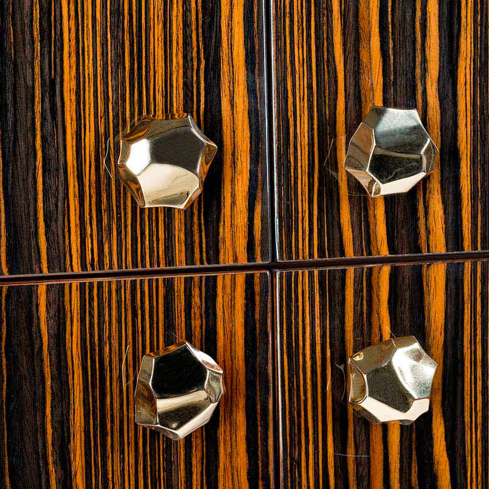 Kabinete moderne të projektimit Ada me 4 dyer, të bëra me shkëlqim, përfundim me shkëlqim. Dhoma gjilpërash me dizajn modern për orendi të rafinuara dhe ekskluzive. Ada është pjesë e koleksionit Original Sin e krijuar nga stilisti Giorgio Ragazzini. Struktura e saj është bërë me shkëlqim me shkëlqim, kryqëzim 45 °, me skaje të brishtë me shkëlqim 20 'dhe mbrapa përfunduar si përpara. Brendësia është e lakuar, me një pasme të pasqyruar dhe një raft strukturor (plus dy rafte xhami të furnizuar), me butë të ngushtë Varesa Salice. Front me dorezë në shkrirjen e bronzit, ngjyrë ari. Baza e metaleve të galvanizuar të artë me shkëlqim 24k. Kabineti Ada është gjithashtu i disponueshëm në versionin e bardhë të nënës së perlës: kërkoni një citat në info@viadurini.co.uk.