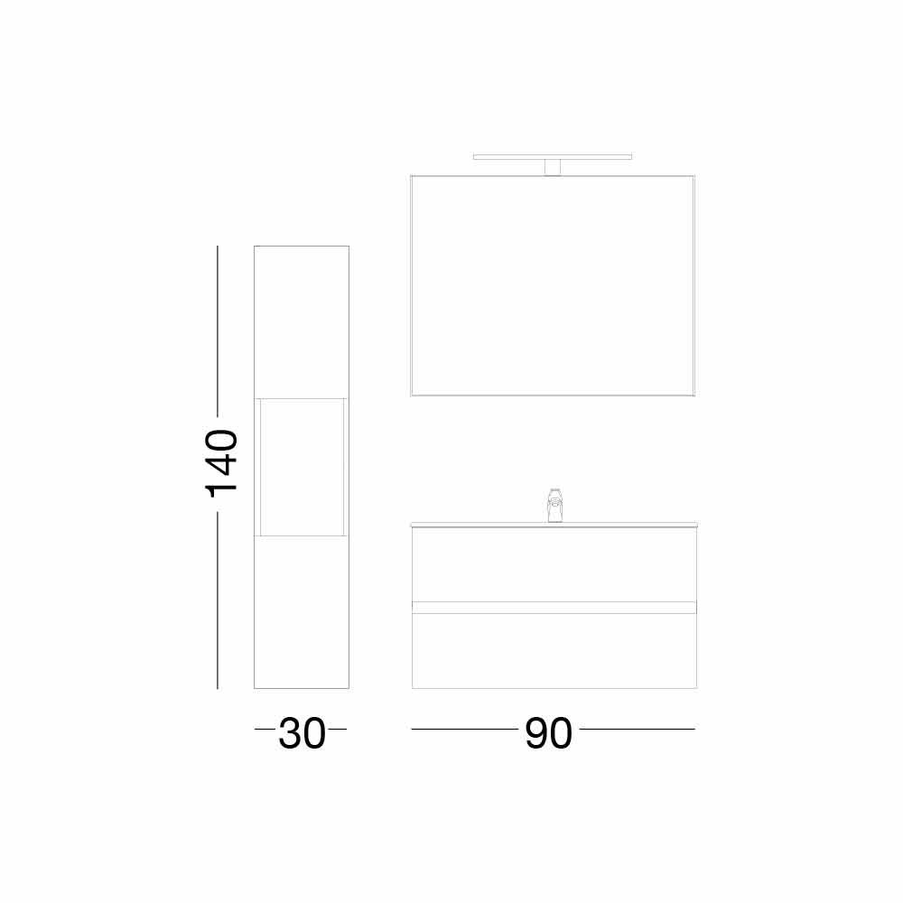| Masat | Baza e lëvizshme + lavabo: L 90 x P 46 x H 55 cm Kolonja: L 30 x P 30 x H 140 cm |