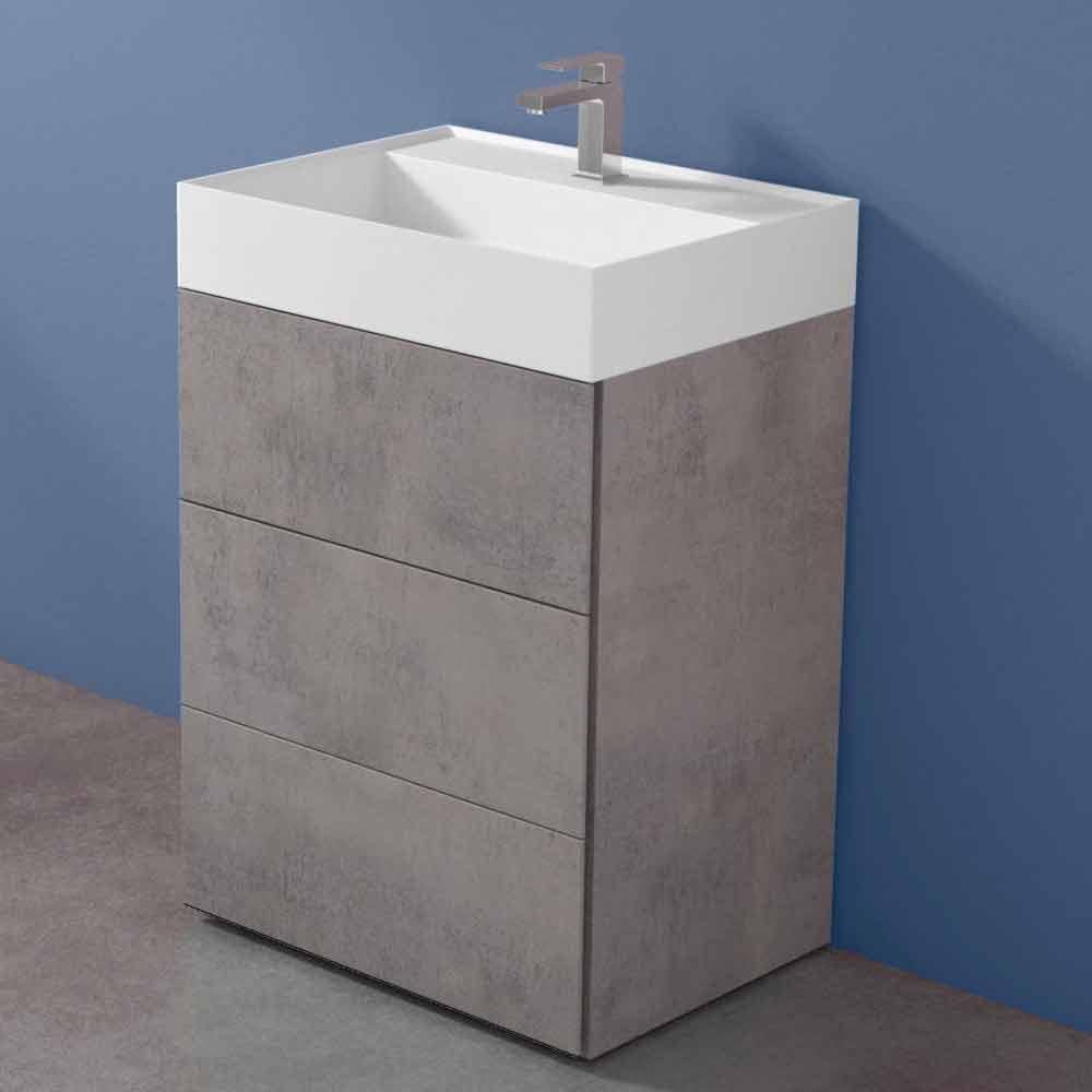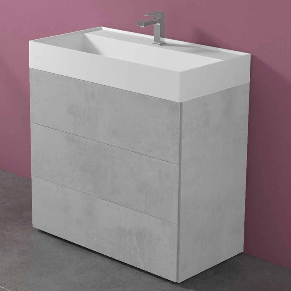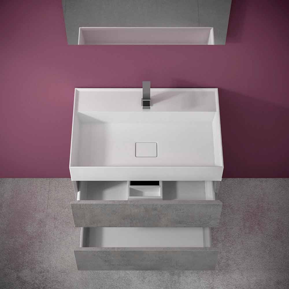 Mobilje banjo me lavaman, dizajn modern ne laminat me 3 sirtare me ngjyra dhe permasa te ndryshme, prodhuar ne Itali.