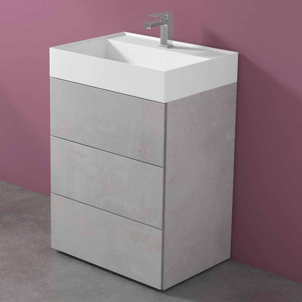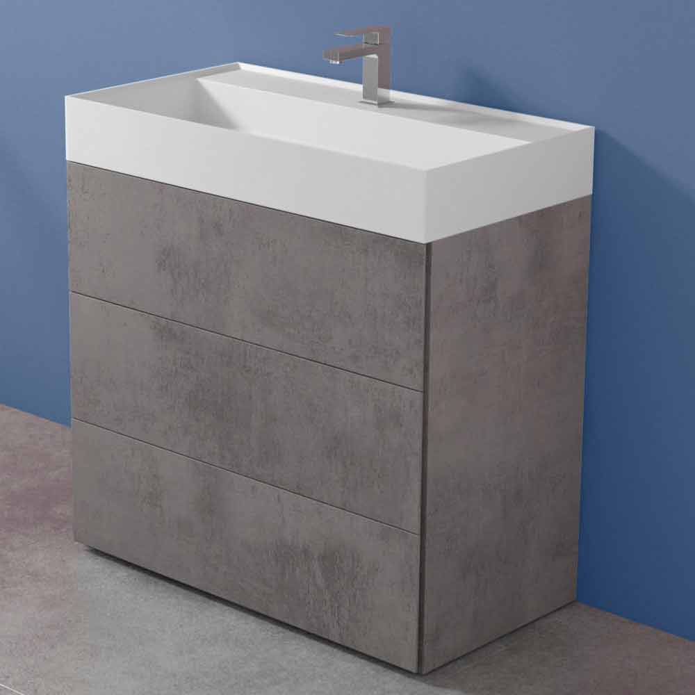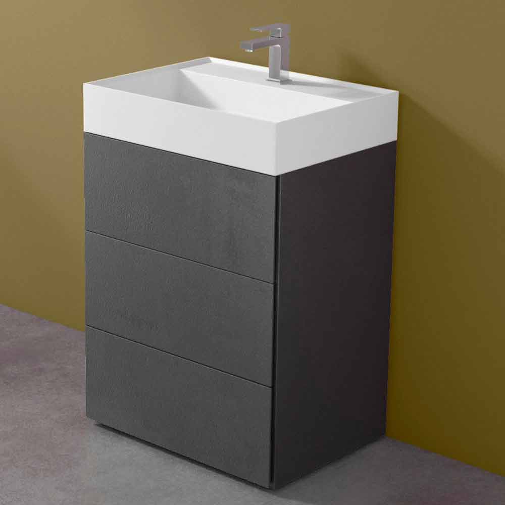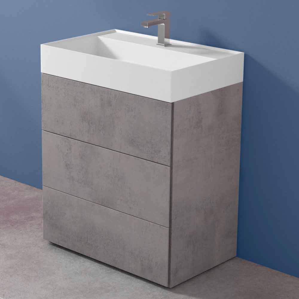 Mobilje banjo me lavaman, dizajn modern ne laminat me 3 sirtare me ngjyra dhe permasa te ndryshme, prodhuar ne Itali.