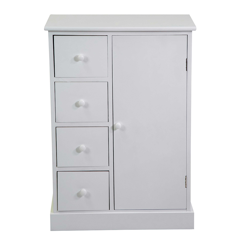 Me 4 sirtarë anësor dhe 1 derë , ofron një zgjidhje të madhe magazinimi , perfekte për ruajtjen e sendeve të përditshme, enëve, tekstileve ose dokumenteve, duke mbajtur gjithçka të rregullt dhe larg syrit. Linjat e pastra dhe dizajni minimal e bëjnë atë jashtëzakonisht të gjithanshëm : perfekt për dhomat e ndenjes, dhomat e gjumit, banjat ose hyrjet.