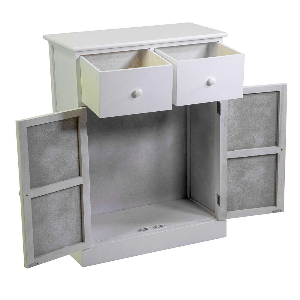 Me dy sirtarë të sipërm dhe dy dyer të poshtme , ofron një zgjidhje të madhe magazinimi , perfekte për ruajtjen e sendeve të përditshme, enëve, tekstileve ose dokumenteve, duke mbajtur gjithçka të rregullt dhe larg syrit. Linjat e pastra dhe dizajni minimal e bëjnë atë jashtëzakonisht të gjithanshëm : perfekt për dhomat e ndenjes, dhomat e gjumit, banjat ose hyrjet.