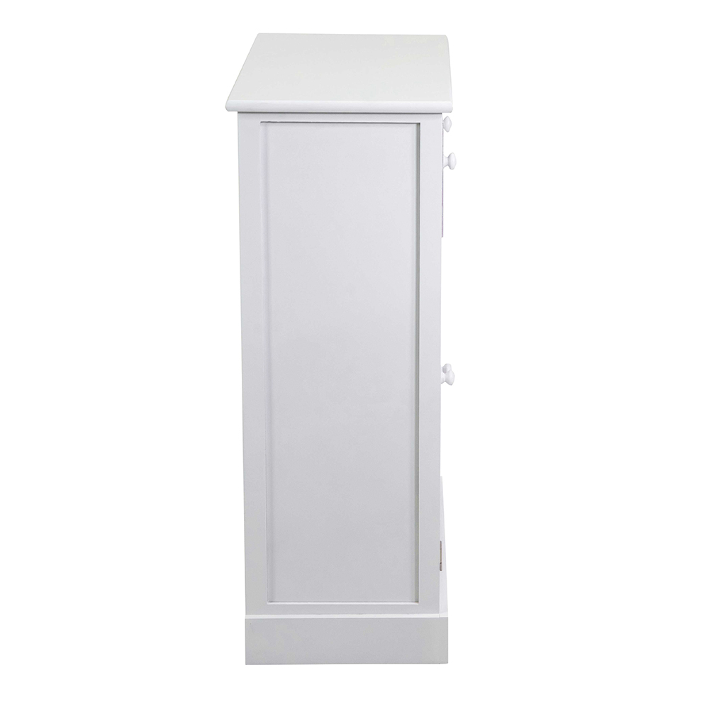 Finitura totale e bardhë i jep kabinetit një pamje të shndritshme dhe të rafinuar, e aftë për t'u përshtatur me çdo stil arredimi, nga klasikja në moderne , duke i dhënë një prekje freski dhomave. Dorezat ton-në-ton dhe menteshat diskrete plotësojnë dizajnin, duke i dhënë një pamje harmonike dhe të detajuar.